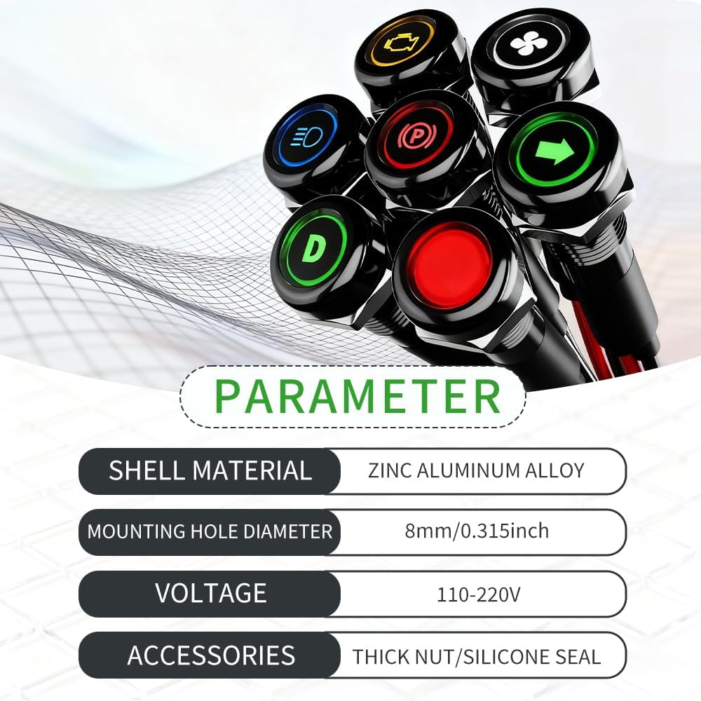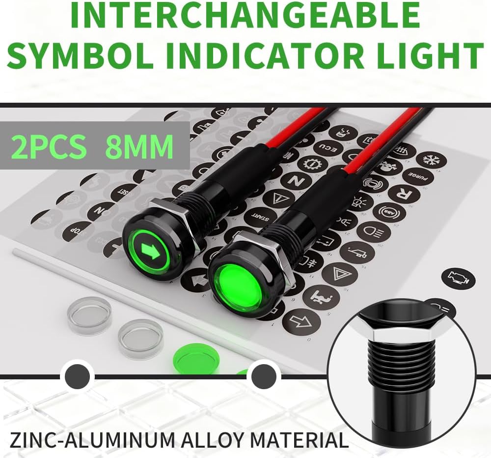 Pcs 8MM 12V-24V LED Indicator Light with 180 Changeable Symbols