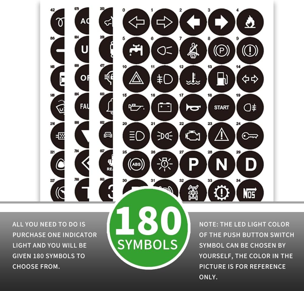 【180 Interchangeable Symbols】: The indicator light is designed with 180 interchangeable symbols, which can be widely customized for various DIY projects. Excellent brightness, visible clearly at night. Its stylish and minimalist design comes in 5 different colors to choose from, providing excellent functionality while complementing any environment