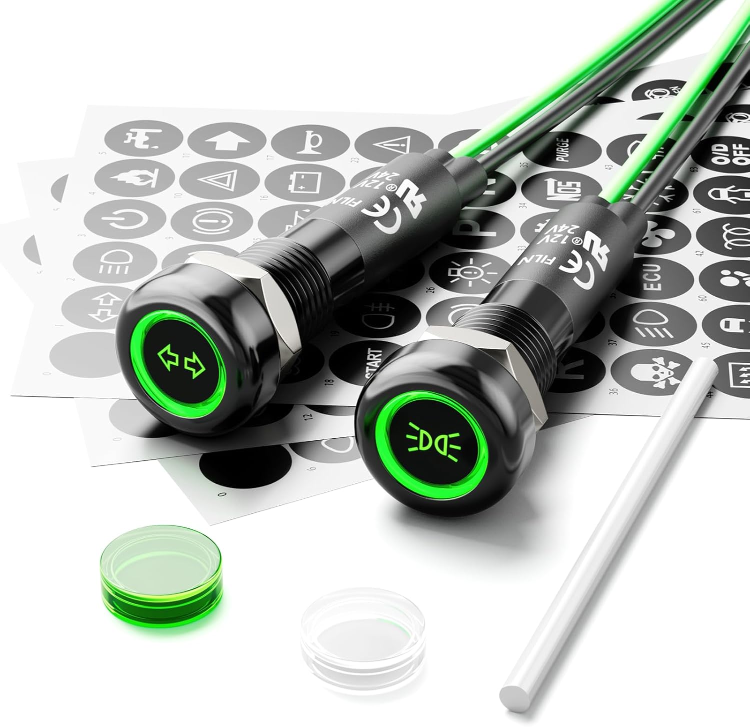 mm size is perfect for a clean, professional-looking install on a dash or panel. The green light is bright and easy to see without being blinding. I really like the variety of changeable symbols—it makes customization simple for different setups.