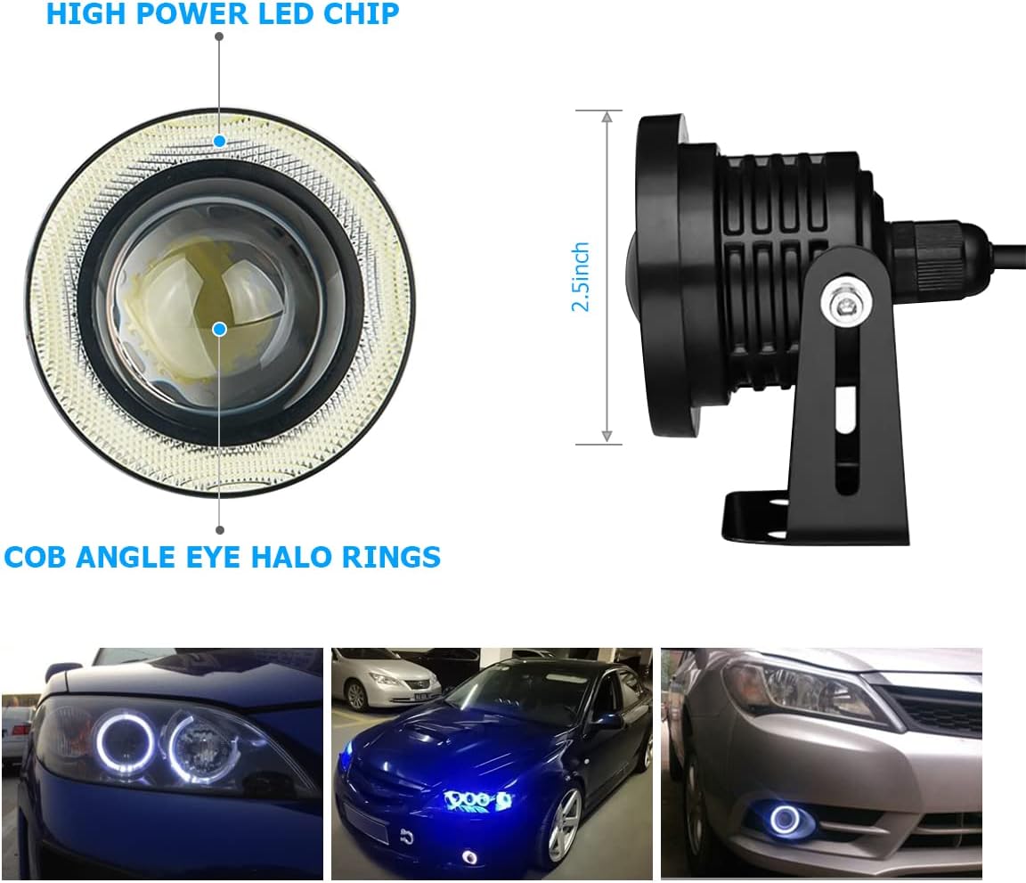 【Super Bright】: This angel eye fog light comes with white COB LED beads plus other colorful colors of angel eye rings, you can choose your favorite color as they are super bright with new LED technology, high power lighting output, brighter than other bulbs on the market. Can be used as daytime running light, monolight, I bet you will love it.