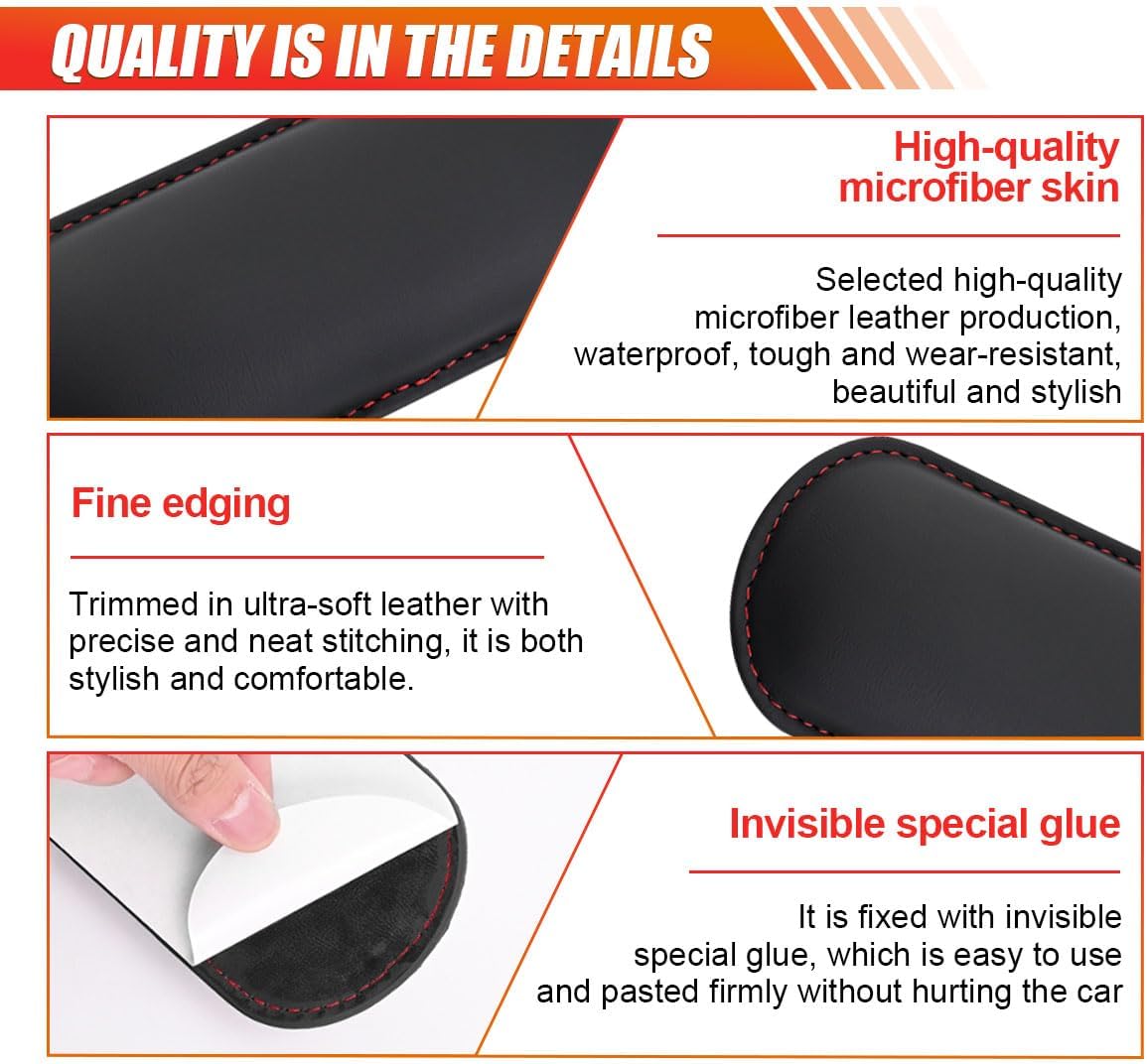 – The car door armrest pad is fixed with invisible special adhesive, easy to use and stick firmly without hurting the car.