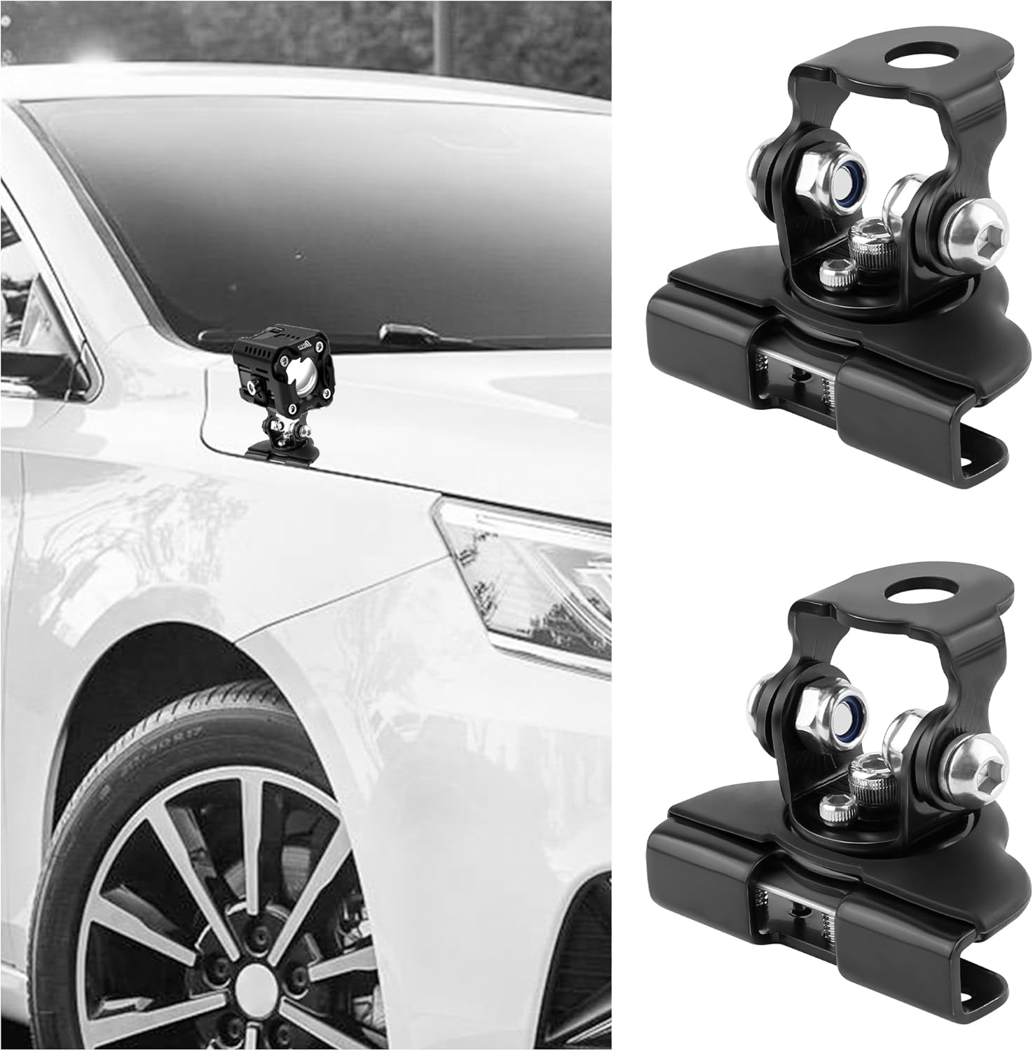 🪤 PREMIUM STAINLESS STEEL MATERIAL: The hood mount light brackets are made of high grade stainless steel material, high hardness and rigidity, sturdy and durable. Not easy to rust, not easy to deform and aging. It can be used normally even in all kinds of bad weather, prolonging the life of the bracket for a long time.