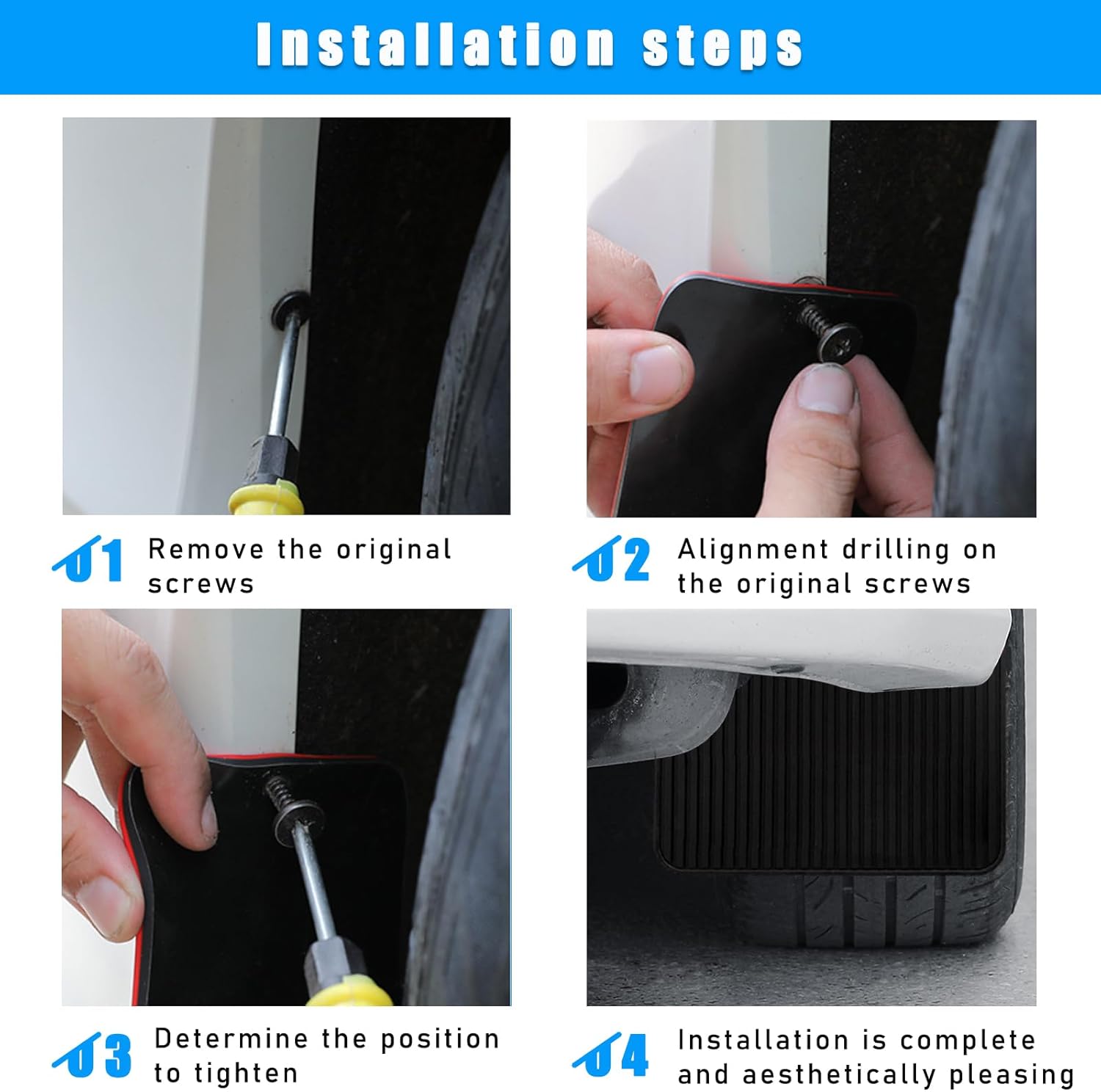 【Easy Installation】: Turn the steering wheel to the limit before installation. Find the original car screw holes and compare the installation positions. After removing the orignal screws, insert the screws along the fixed points on the fender. Finally, tighten the screws compared to the original car screw hole positions.
