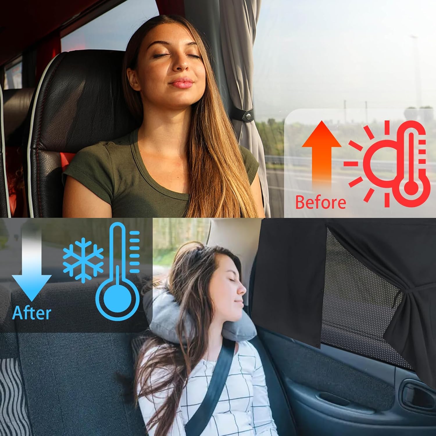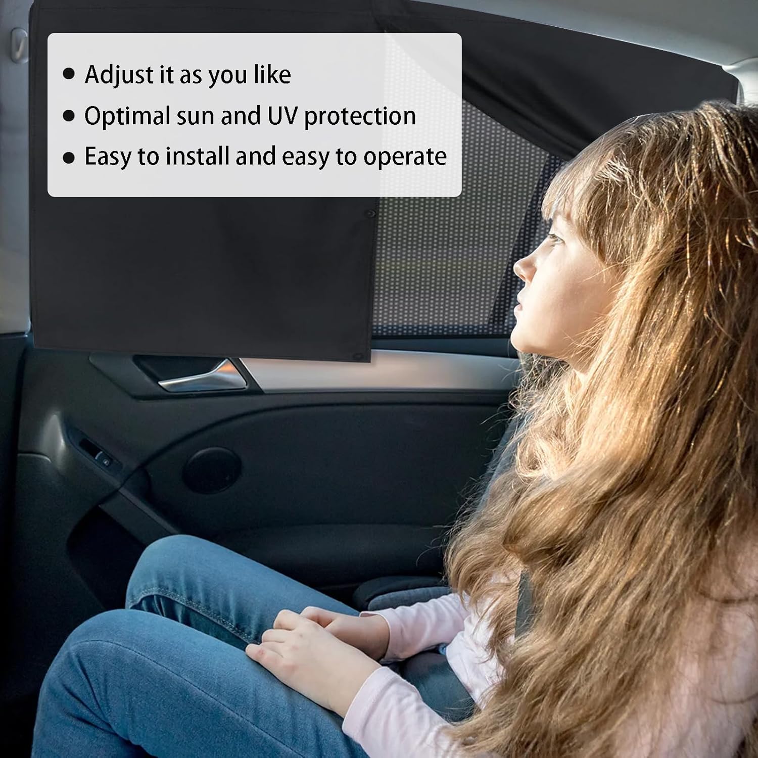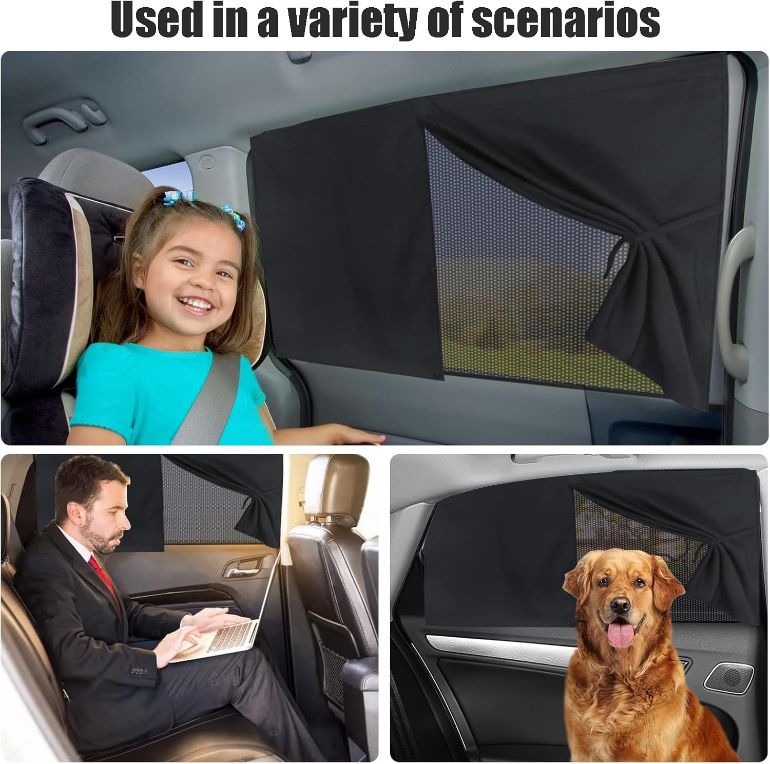 Double Layer Design: The car side curtains are double layered to block harmful UV rays, reduce heat and ensure privacy. It keeps the car cool and protects passengers from the sun.
