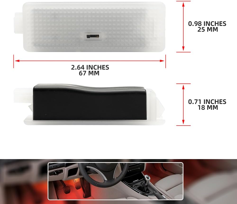 INSTALLATION: Easy and secure to install directly, plug-and-play installation, direct replace your original front or rear courtesy footwell lights, greatly upgrade your B’MW with a much noticeable interior lights
