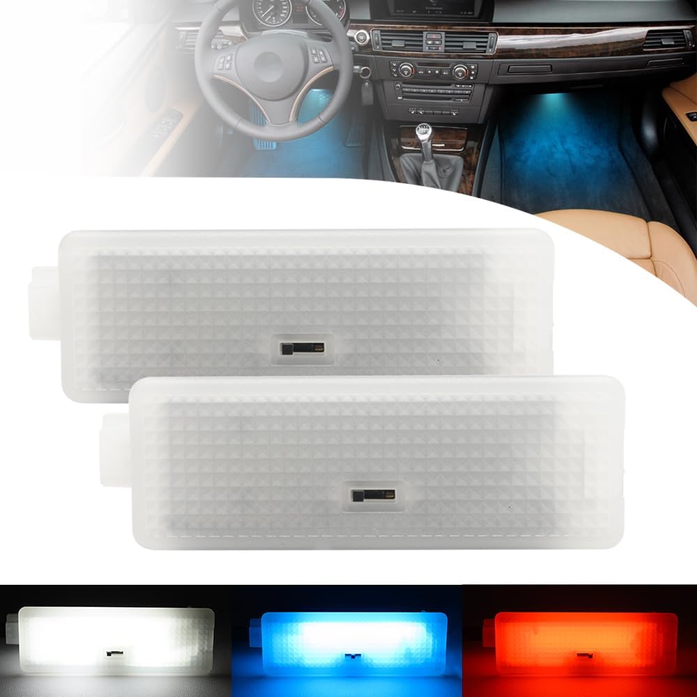 2PCS Led Courtesy Footwell Ambient Lights for B’MW 1 3 5 6 7 Series X1 X3 X5 X6 Z4 E82 E88 E90 E91 E92 F12 F13 E84 E83 F25 6500K White Red Blue Interior Atmosphere Lamp Under Dashboard Floor Light