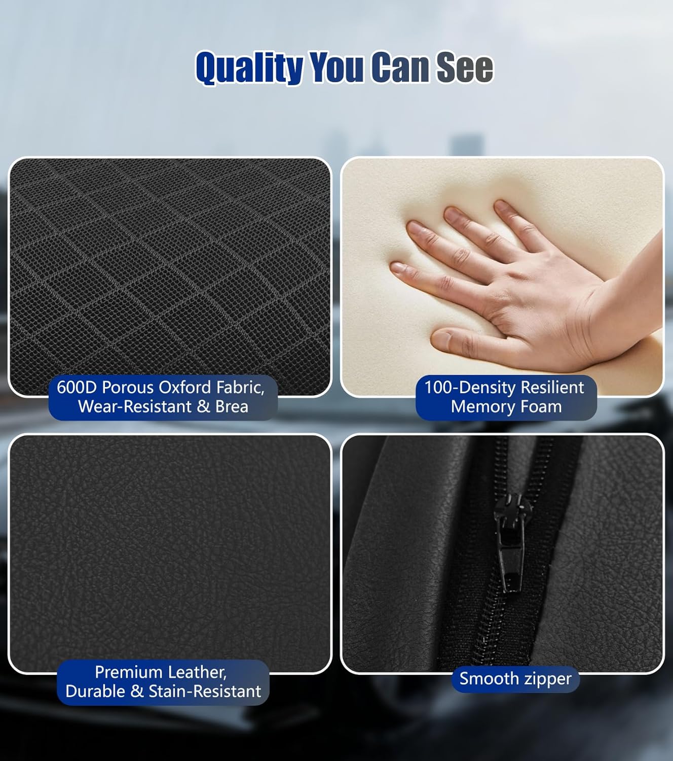 【PREMIUM MATERIAL】 You’ll love our car neck pillow for driving, filled with 100% memory foam for soft and resilient support. The cover combines 600D Oxford fabric and premium leather for comfort and durability, providing excellent support for your neck and head to ensure a safer, more comfortable driving experience.
