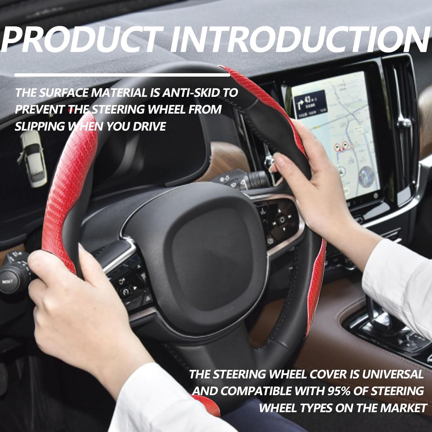 High Quality: Standing out for its durability and easy maintenance, carbon fiber material, the leather Steering Wheel Cover is light and breathable, wear-resistant and is not easily deformed.