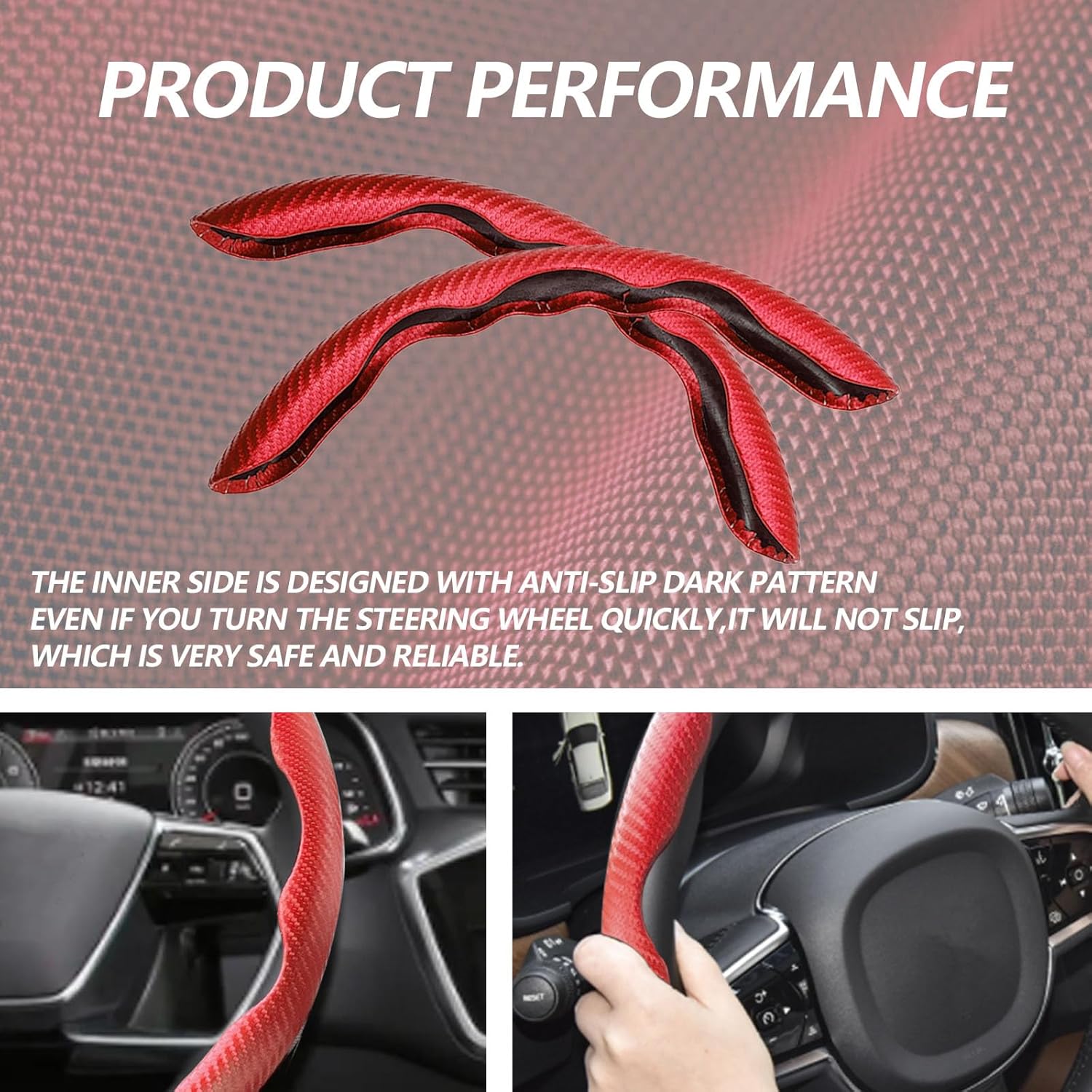 2pcs Universal Fit Carbon Fiber Steering Wheel Cover RED