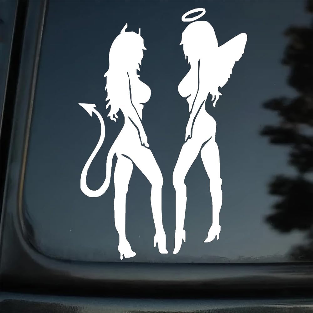 2pcs Vinyl Car Sticker – Devil Angel Girl, 7inches, Motorbike Trucks Car Styling Decorative Decal, Durable, Weather-Resistant, Easy to Apply and Remove #2BZ450 (White)