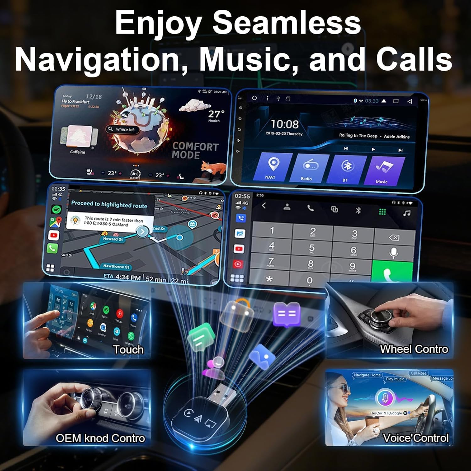 【Mirror Phone to Car Screen Adapter】Plug-and-Play for Instant Connection This mirror phone to car screen adapter is ultra-easy to use: plug it into your car’s USB port, pair once, and it automatically reconnects every time you start your vehicle. Get a hands-free experience without complicated installation—ideal for busy drivers who want to stay connected safely (and avoid fumbling with cables while on the road).