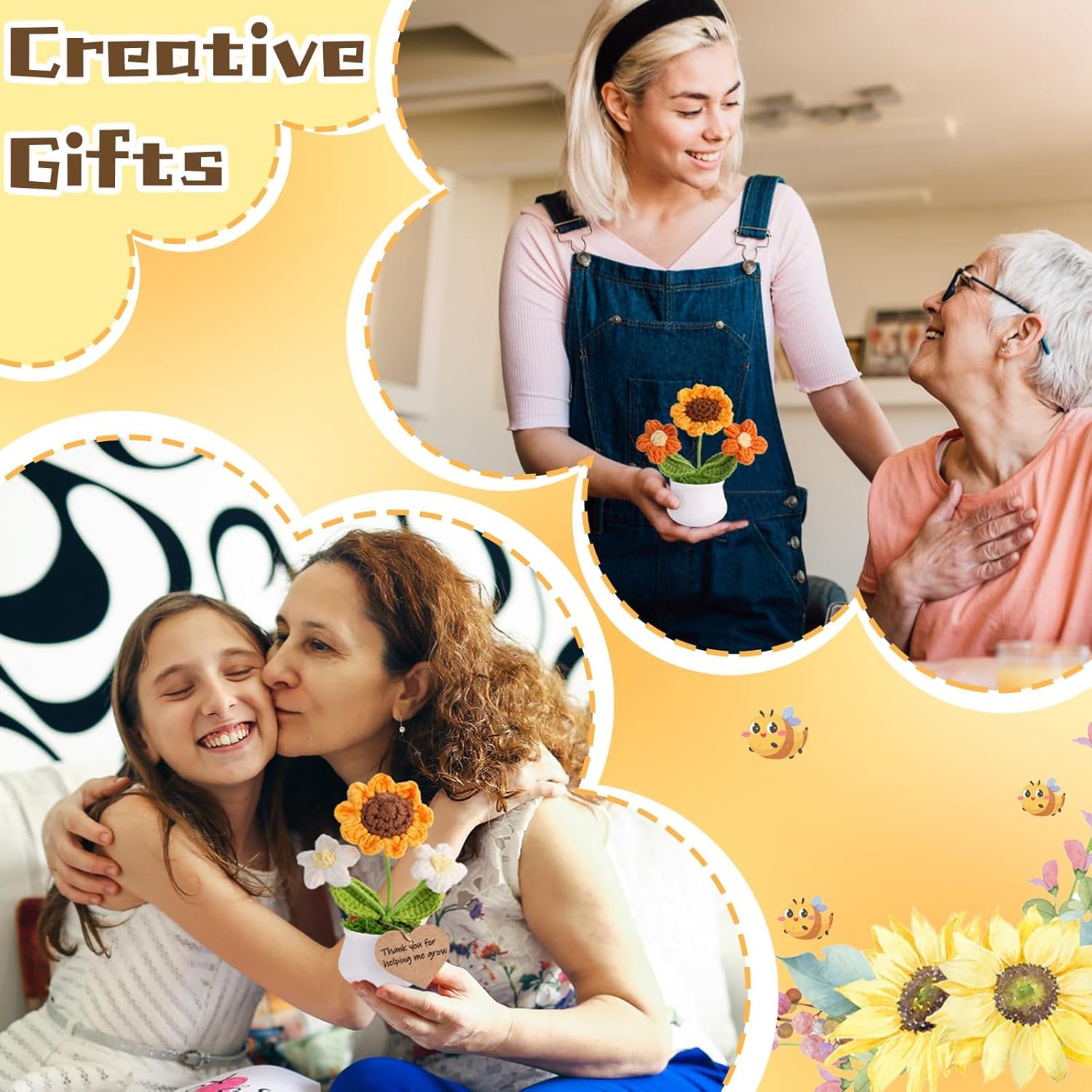 Complete Gift Ready Set:Includes 3 charming crochet flower pots, 3 heart-shaped paper cards, and 1 rustic jute twine for tying. Ideal as a crochet flower bouquet or plush bouquet for birthdays, Mother’s Day, teacher’s Day or Valentine gifts
