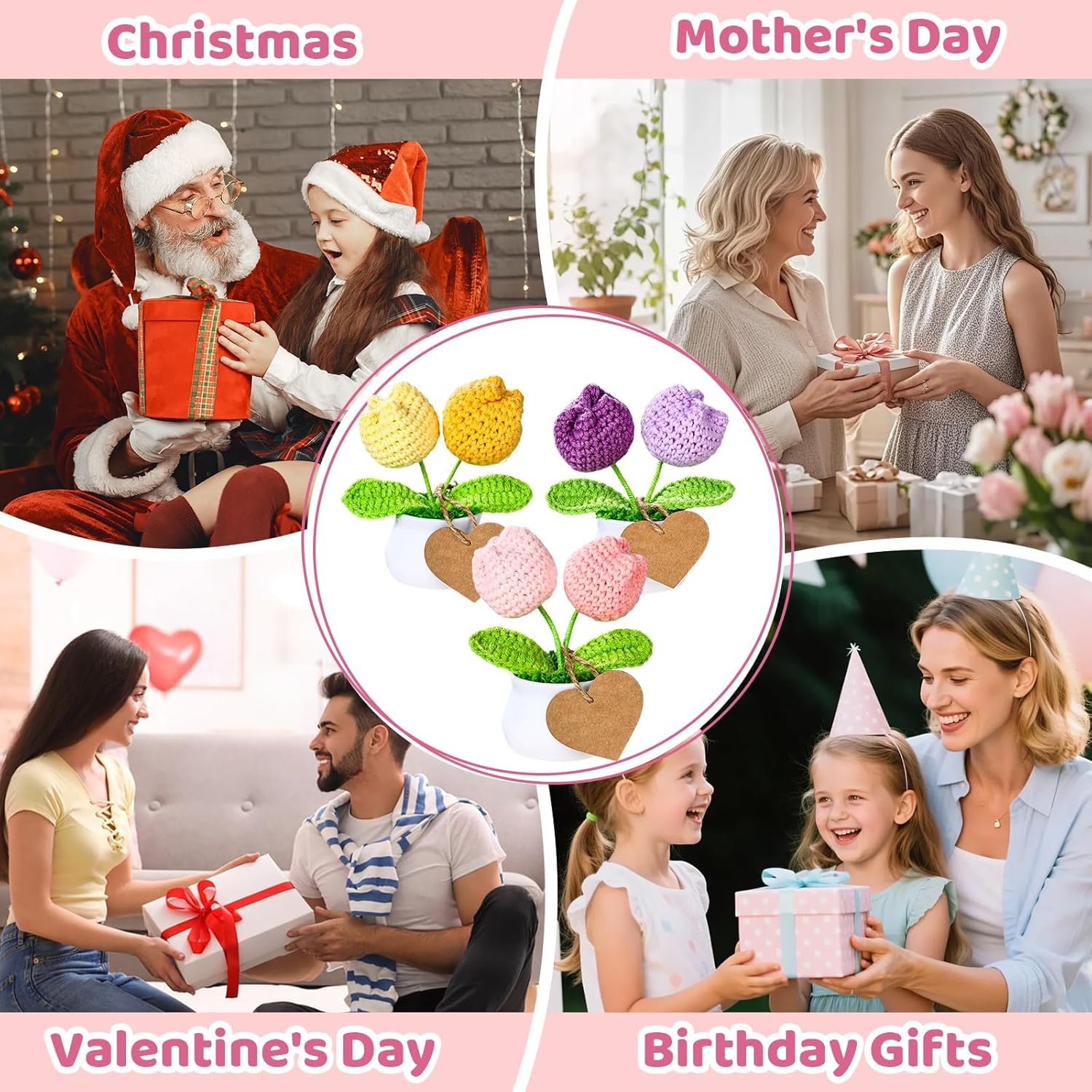 Versatile Decoration:Compact size fits anywhere! Use these crochet car accessories to brighten your dashboard, or display them as home decor, office desk plants, or pink Valentine’s decor