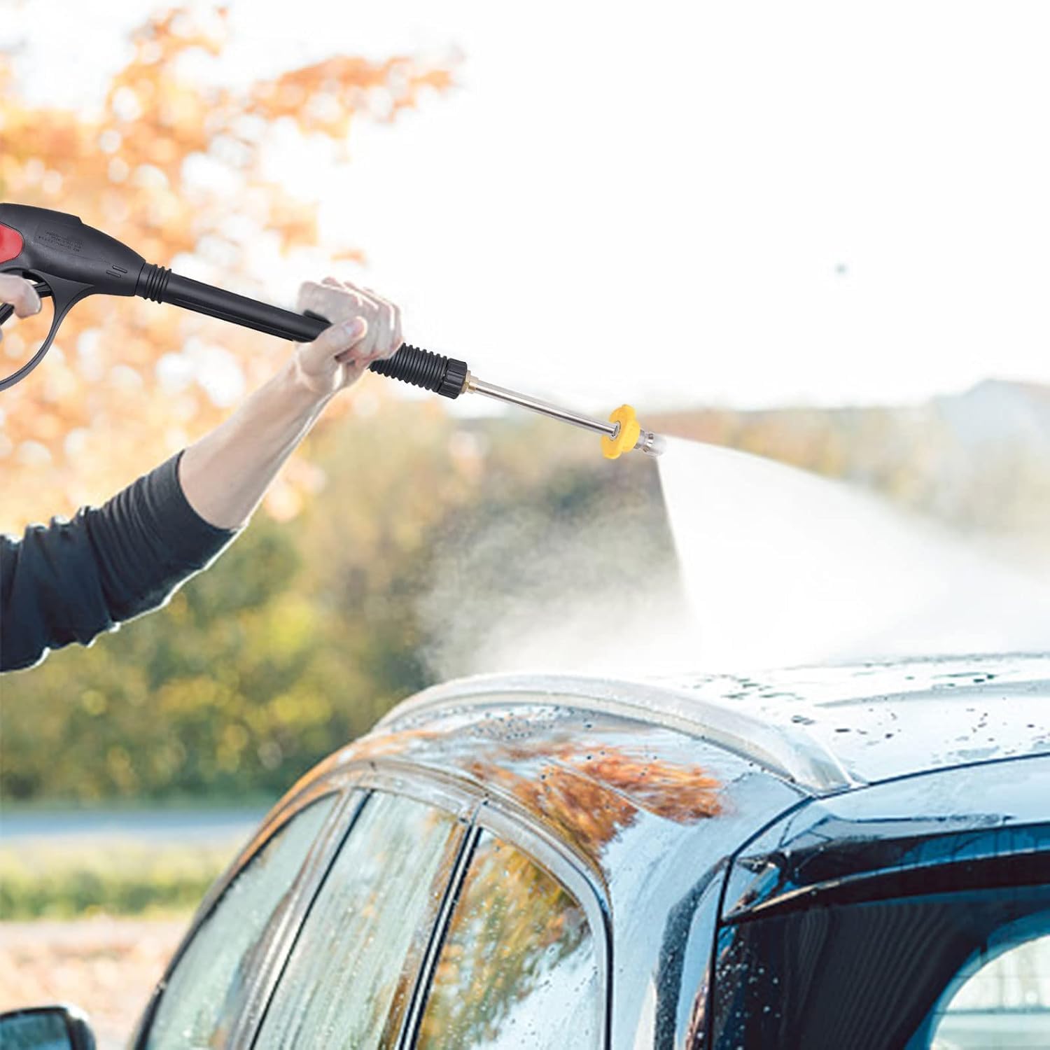 HIGH PRESSURE ERGONOMIC SPRAY GUN SPRAYER – Five color-coded spray tips with 0°, 15°, 25°, 40°, & Soap-degree spray patterns for a variety of uses,such as watering flowers and plants,washing car,washing fence,washing roof.