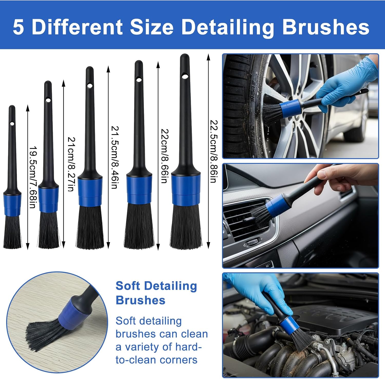 Designed for Interior & Exterior Auto Detailing:Safely clean dashboards, air vents, trim, seats, tires and wheels with purpose-built brushes for every surface. This kit handles interior detailing, exterior washing and hard-to-reach areas with ease.