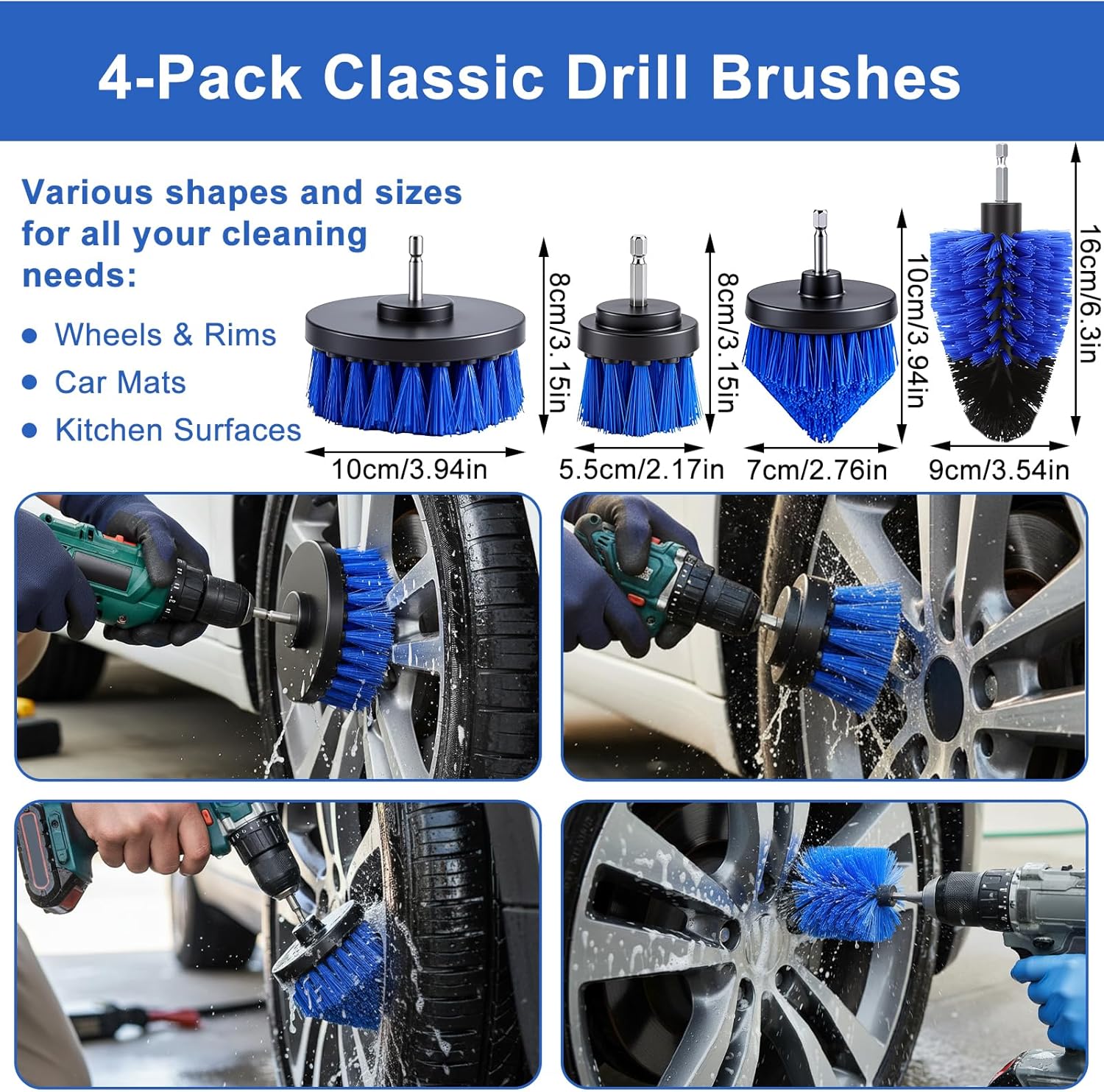 Drill Brush & Polishing System for Deep Cleaning:Use the drill brush attachments to power through carpets, floor mats, wheels and engine bays. The foam and wool polishing pads are perfect for waxing, polishing and restoring shine to paint, rims and headlights.