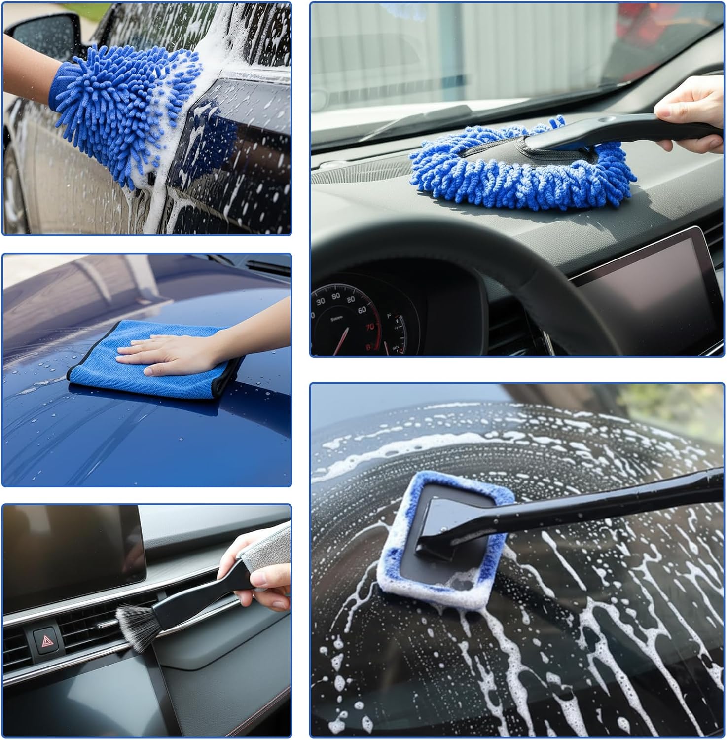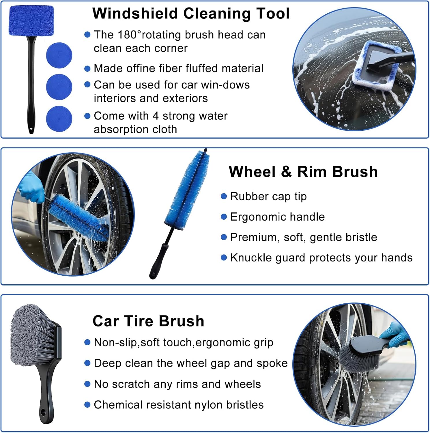 Durable, Reusable & Comfortable to Use:High-quality bristles resist shedding, microfiber towels offer strong water absorption, and ergonomic handles reduce hand fatigue during long detailing sessions.