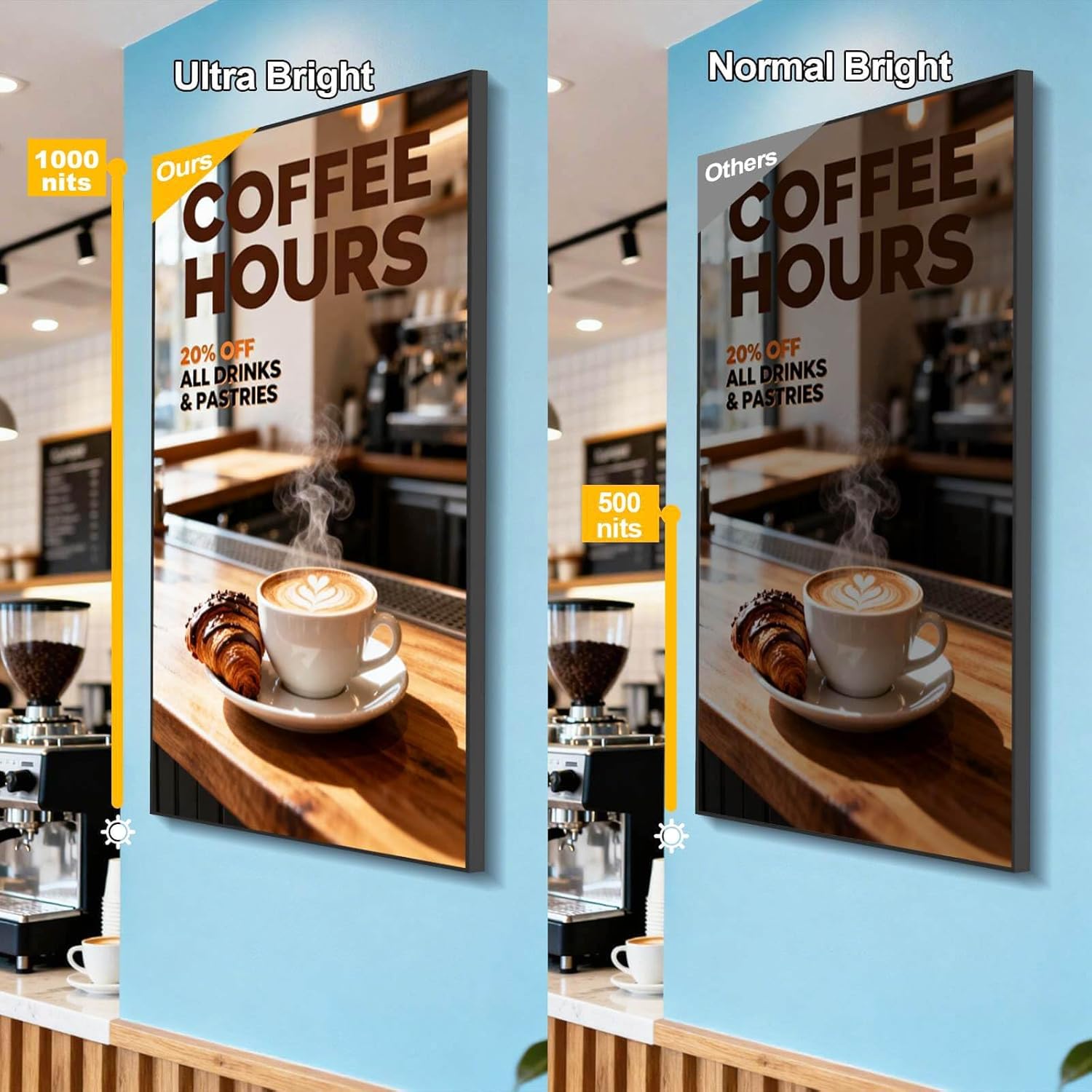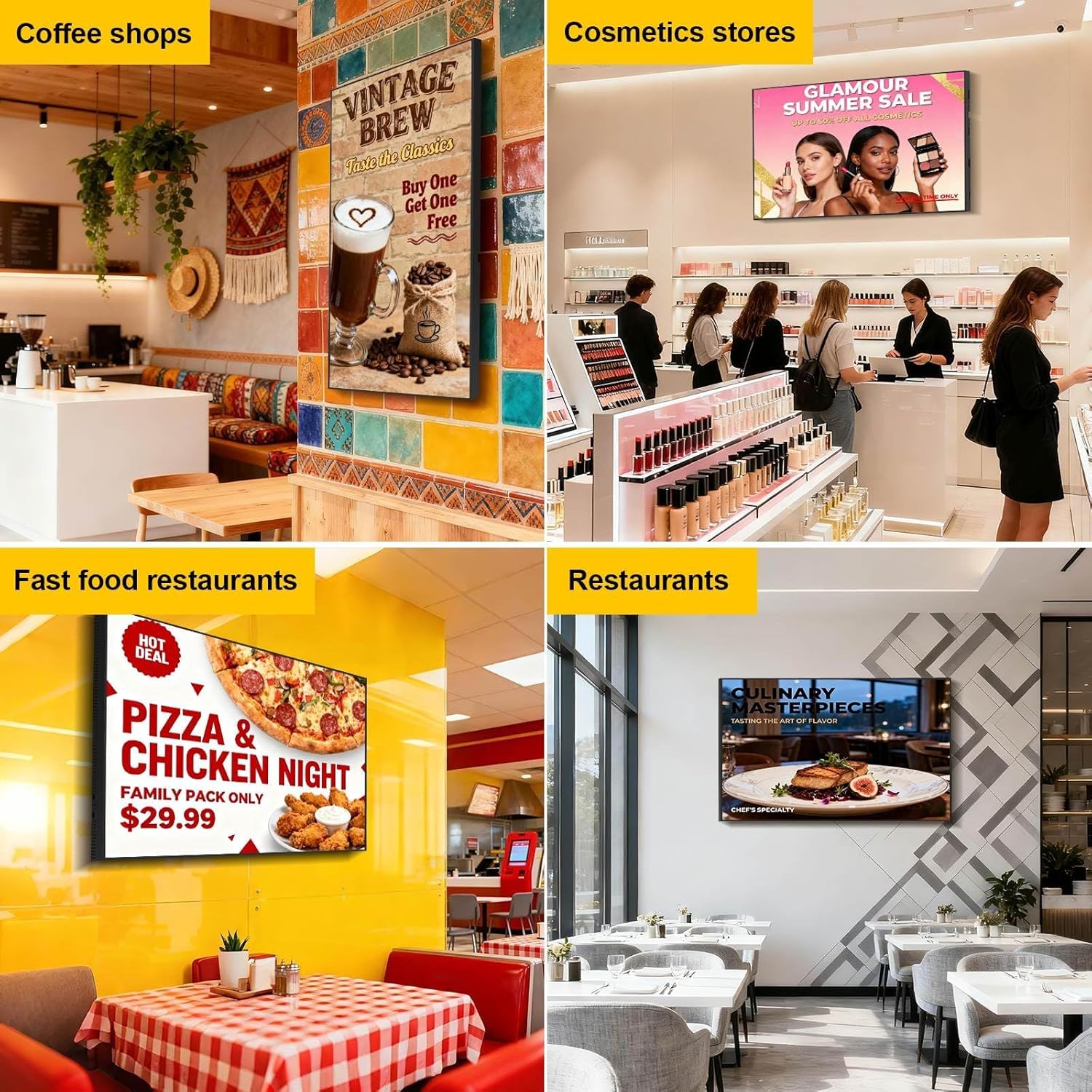 [Versatile for Any Indoor Business Application] The advertising display is perfect for restaurants, malls, airports, hospitals, supermarkets, convenience stores, gyms, hotels, and business centers. This professional-grade indoor digital signage elevates your advertising impact, helping your brand stand out in busy, high-traffic environments.