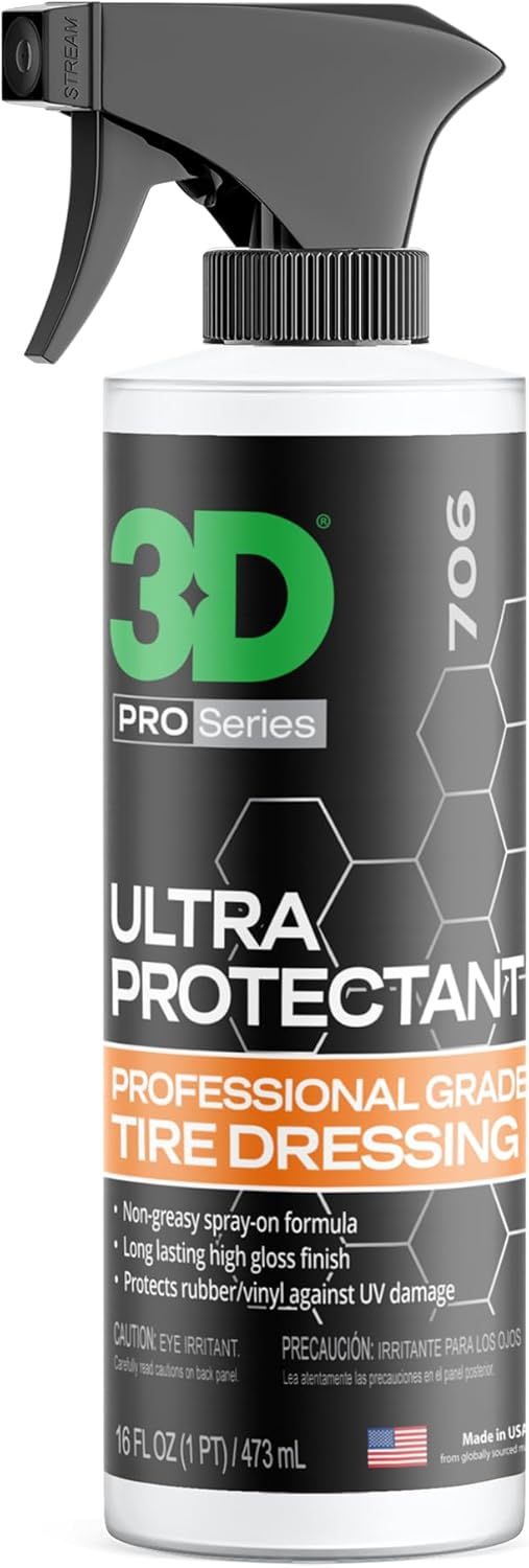 Long Lasting Results You Can Count On: Forget reapplying every few days. 3D Ultra Protectant keeps tires looking fresh for weeks. Its high-durability finish withstands the elements and repeated washes, giving you more drive time and less down time in the garage