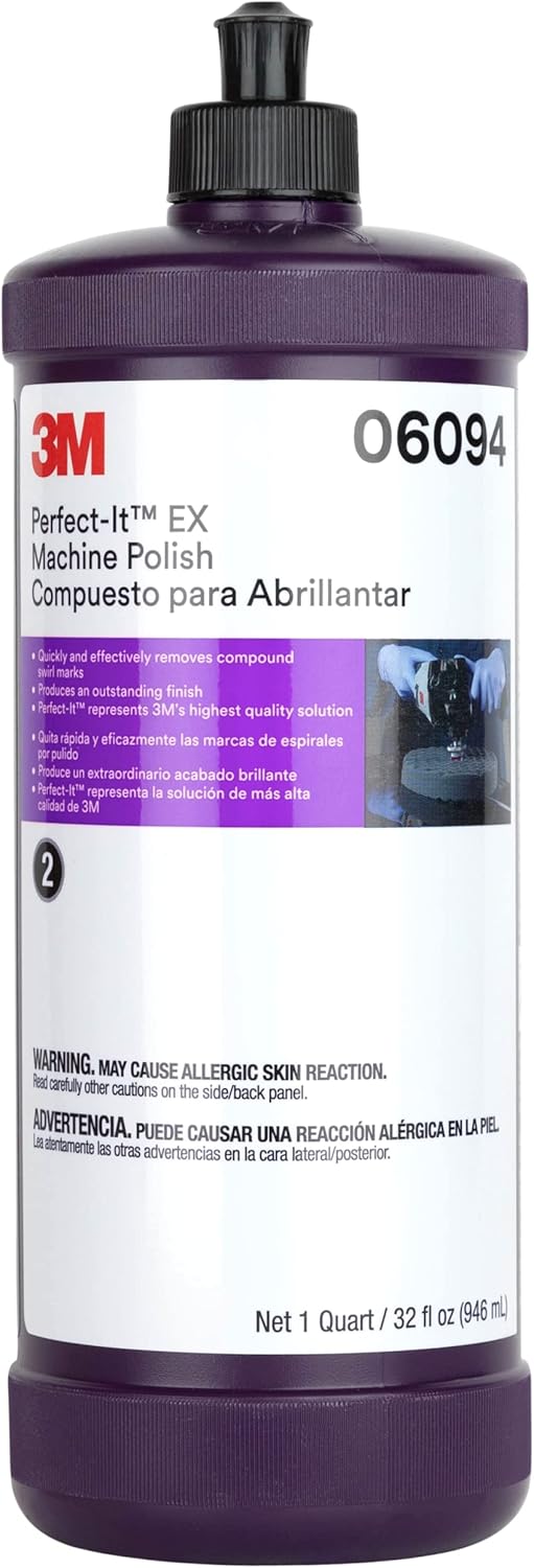 06094 3M MACHINE POLISHING COMPOUND 1 QT: The highest-performing machine polish for removing compound swirl marks in collision repair. It stays wet longer, using less polish for the same refined finish. Holds better on the pad for reduced sling and easier cleanup. You get smooth, polished surfaces without compound swirl marks – faster, and at less cost.