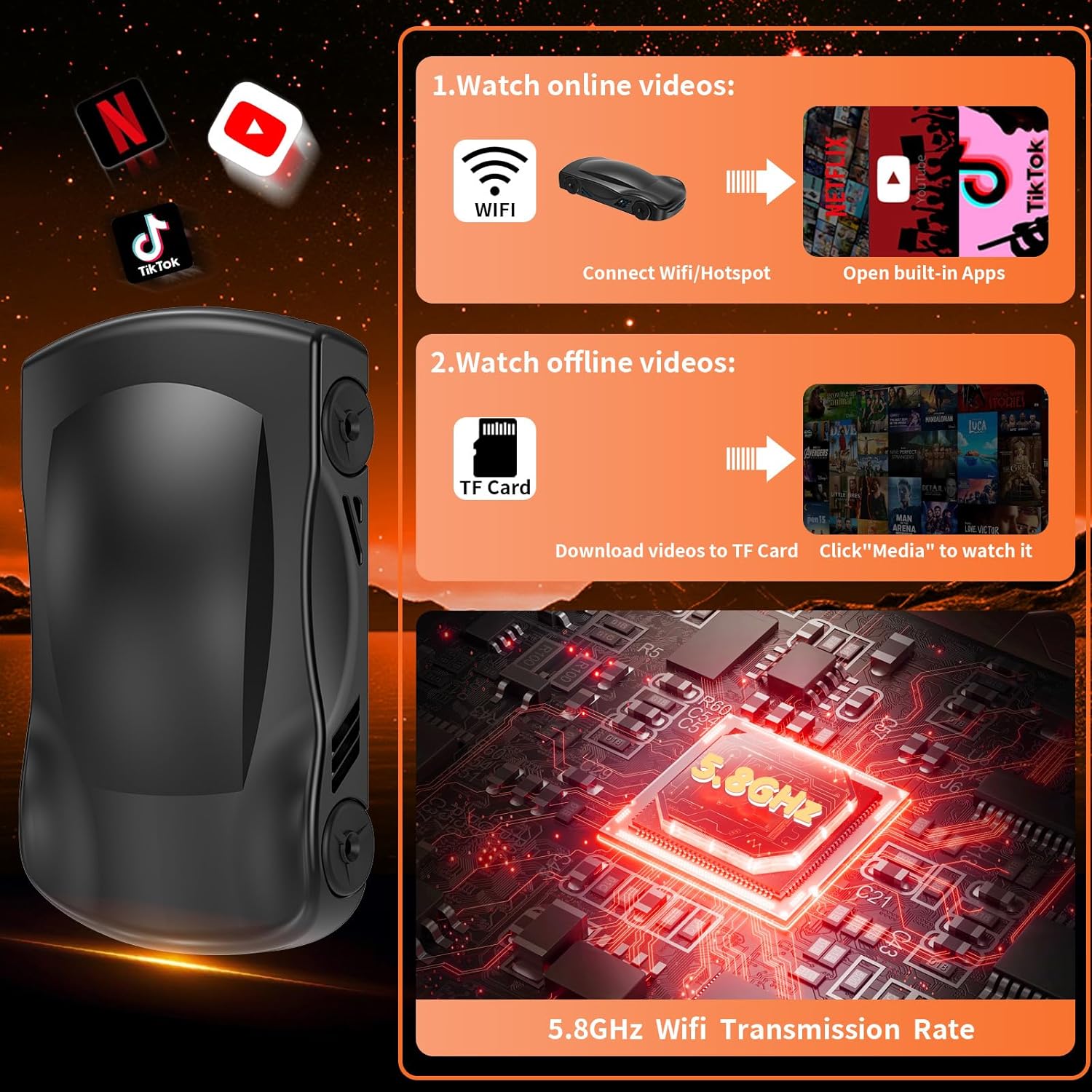 Setting up is a breeze, and the performance is impeccable. Really handy device. Able to do carplay or android auto. Also able to watch streaming services just need an internet connection. Nice magic box. Video streaming is seamless and stable as long as you have a good internet connection on your phone.