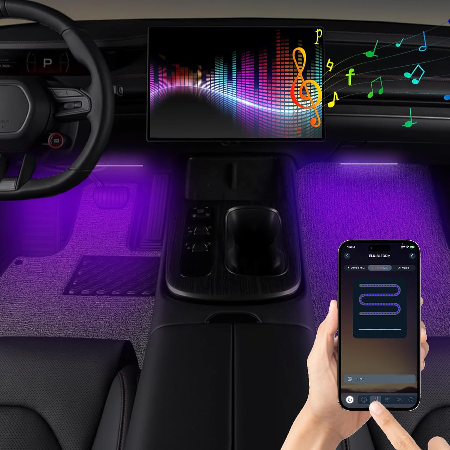 Smart APP Control for Easy Customization Control your car interior lights effortlessly through the smart APP — change colors, adjust brightness, or switch lighting modes anytime. The RGB LED strip lights support millions of colors and DIY presets to create your perfect driving atmosphere.