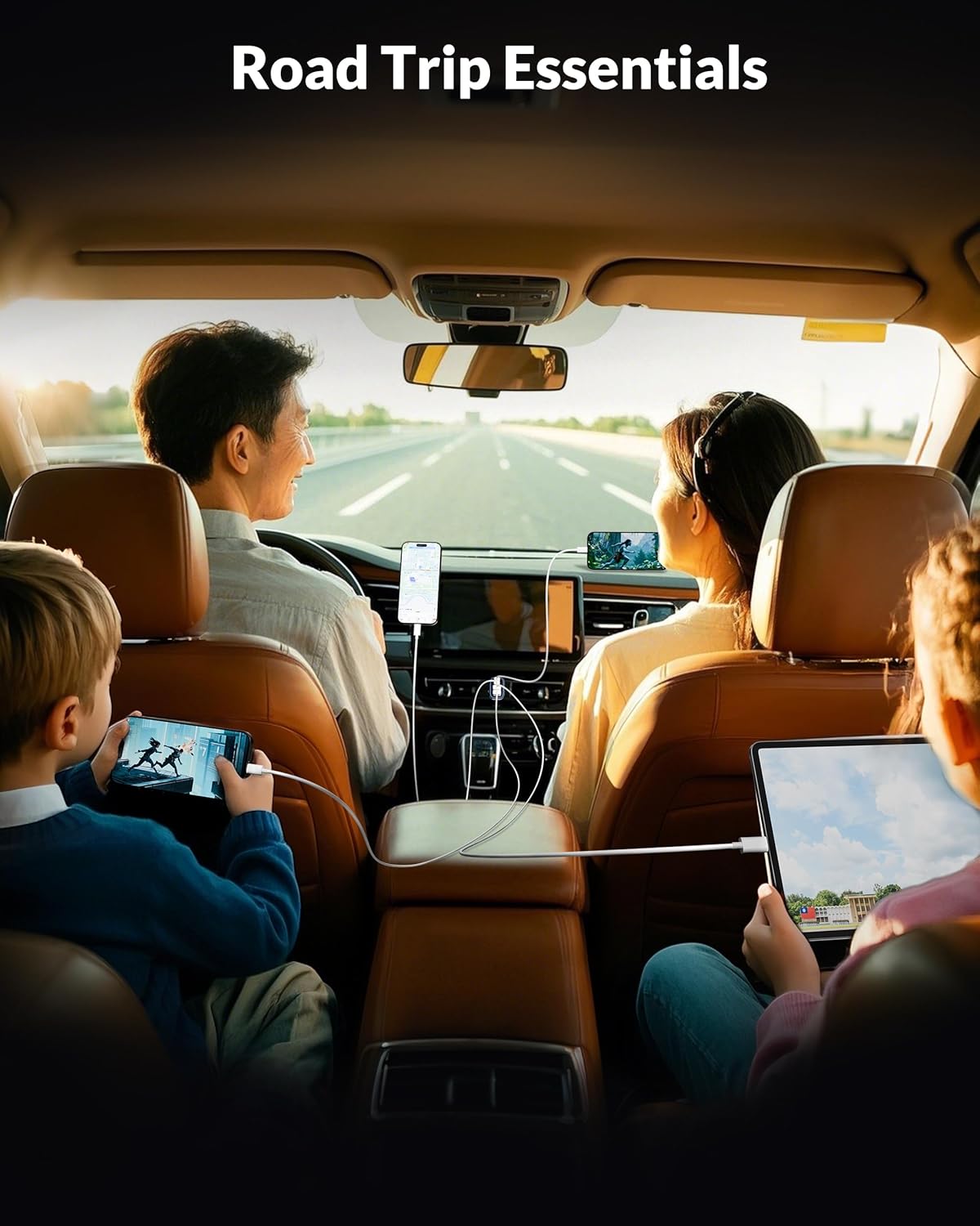 4-Port Fast Car Charger: USB C car charger features dual PD 45W(Max) USB C ports and 45W(Max) USB A ports, allowing you to charge up to 4 devices simultaneously, including smartphones, tablets, and navigation systems. It can automatically identify devices and assign optimal charging efficiency, making it the best partner for family trips