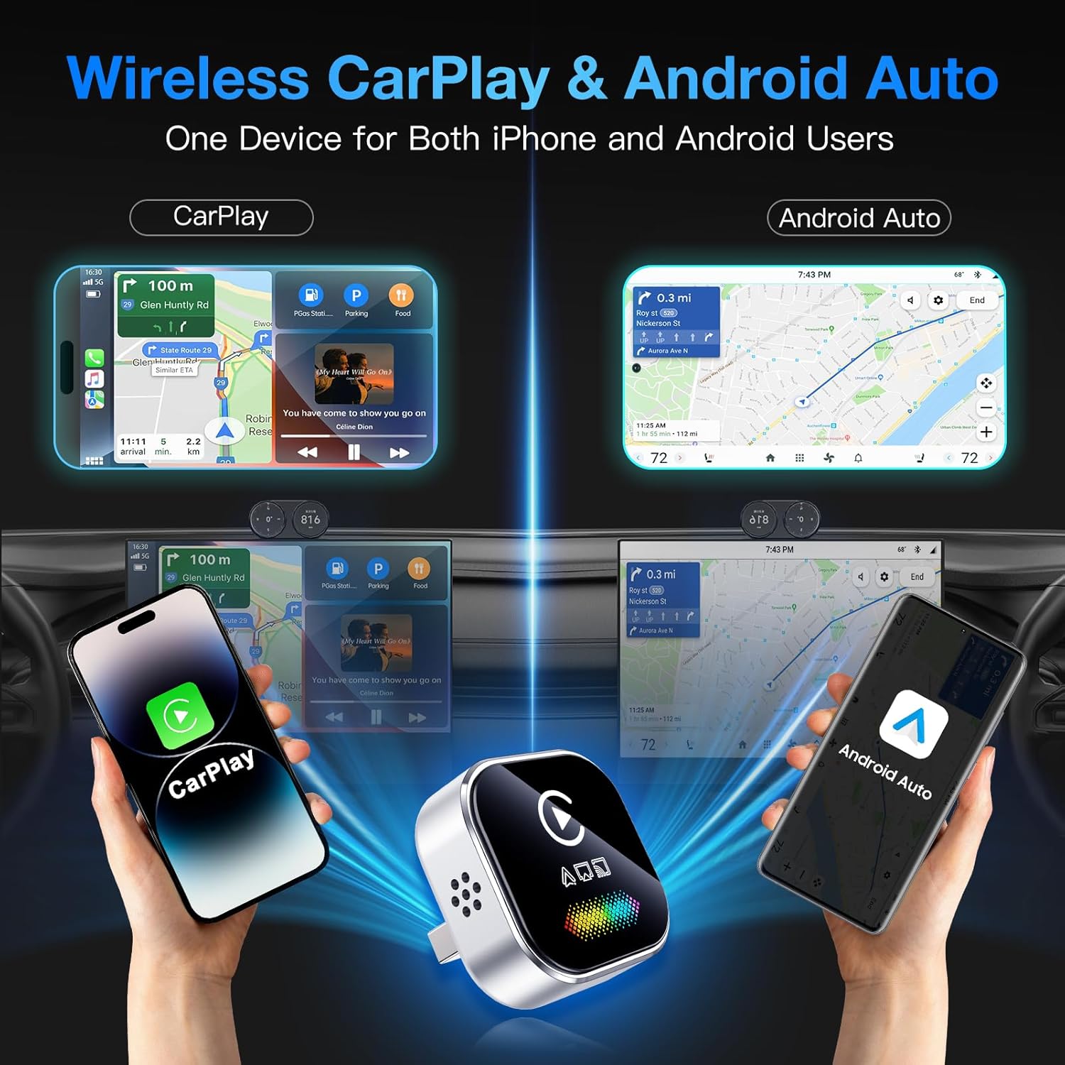 Outstanding Core Features — Wireless Conversion + Additional Functions Converts wired CarPlay or Android Auto to a wireless connection. Adds AirPlay and screen mirroring capabilities for both iPhone and Android devices, allowing you to display videos, maps, or photos on your car’s screen. This is a practical upgrade over standard USB cables.