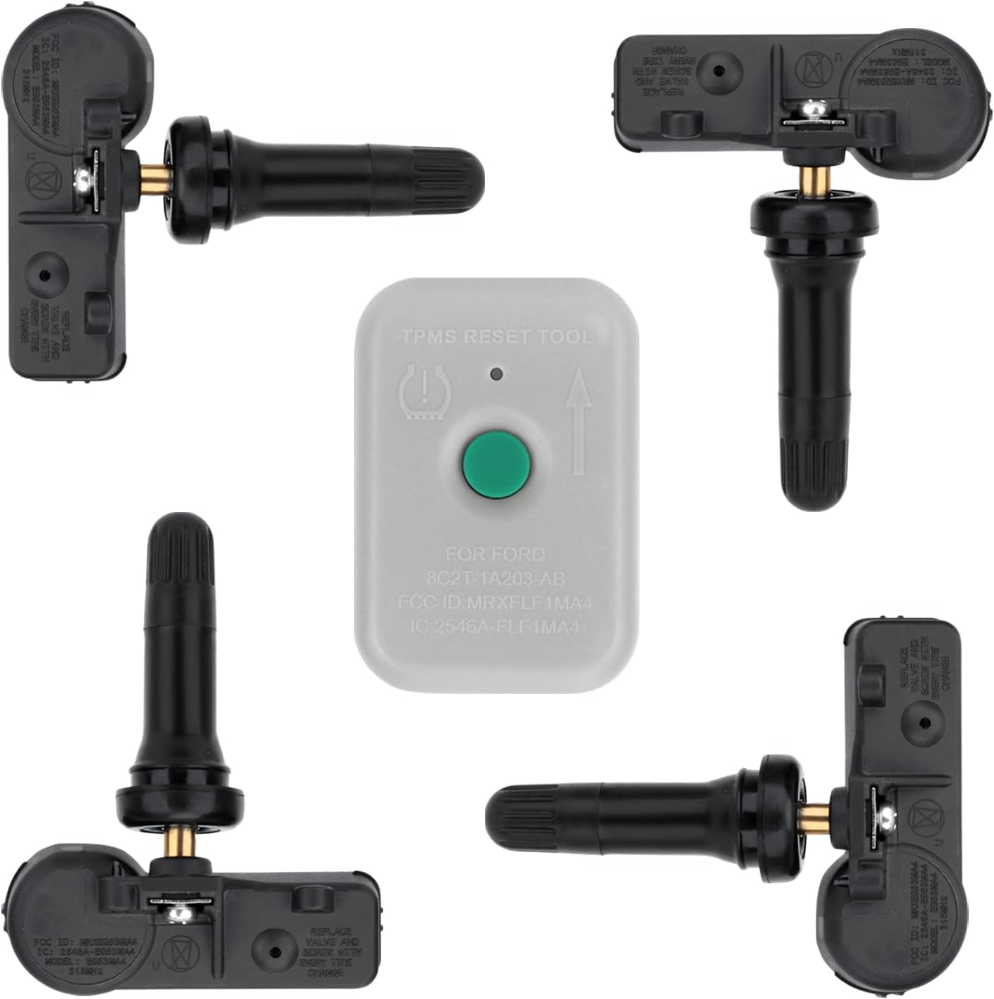 【Combination Pack】4 Pack Tire Pressure Monitoring System Sensor 315MHz DE8T-1A180-AA TPMS Sensor+ TPMS Relearn Tool