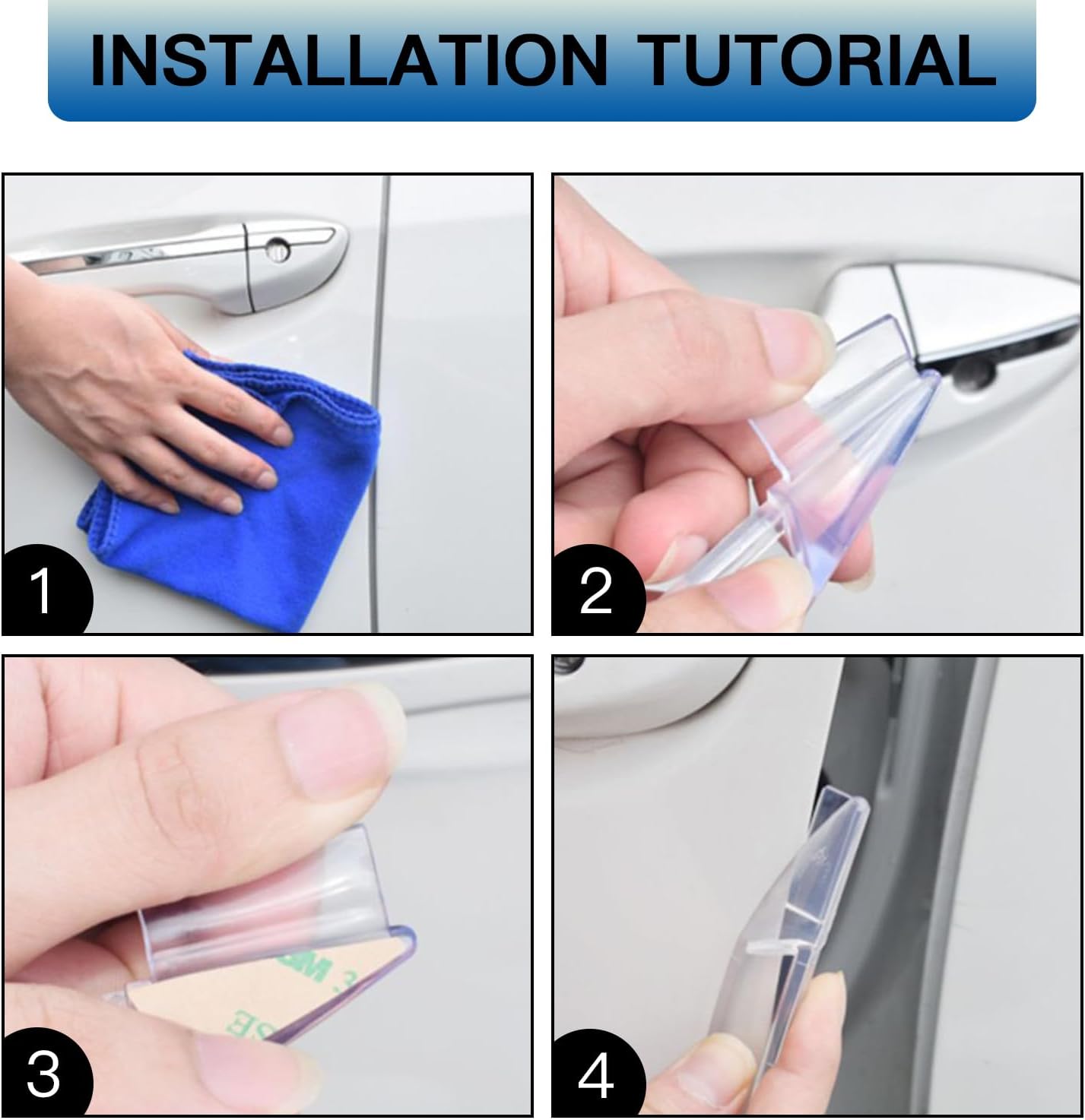 Detailed Specifications: The package includes two long anti-collision strips measuring 5.7 inches by 0.8 inches, and two short strips measuring 3.1 inches by 0.8 inches. The longer models fit smoothly over front door arcs, while the shorter ones accommodate the larger curves of rear doors.