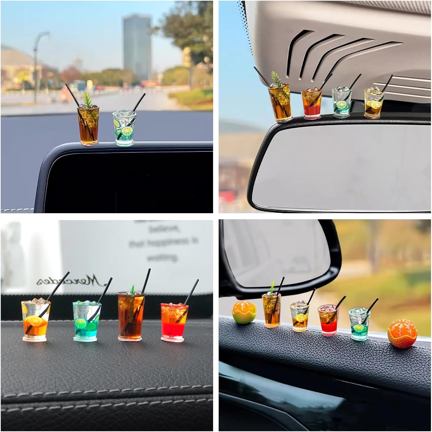 【Mini Drink Car Ornaments】You will receive 4 cute mini drink ornaments, along with 10 non-marking glue pads for car interior decor. The double-sided adhesive pads can securely attach mini drink decorations to interior of your car and won’t leave any unsightly residue when removed