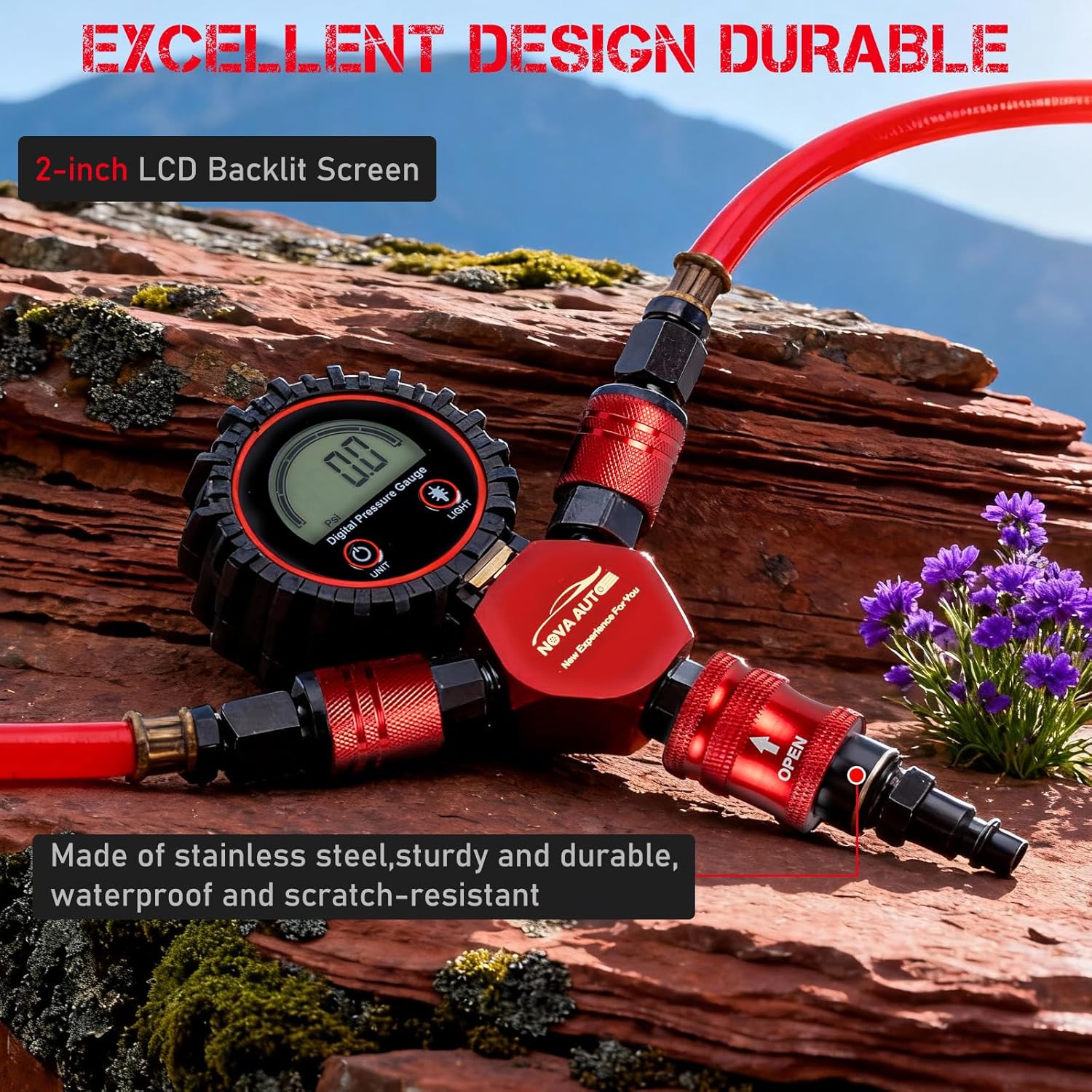 Precision Pressure Control: The 4 Tire Inflation & Deflation System integrates a 300 PSI high-precision digital tire pressure gauge, enabling real-time monitoring and precise adjustment of each tire’s pressure. This ensures pressure consistently aligns with manufacturer recommendations, enhancing fuel efficiency, tire longevity, and driving safety.