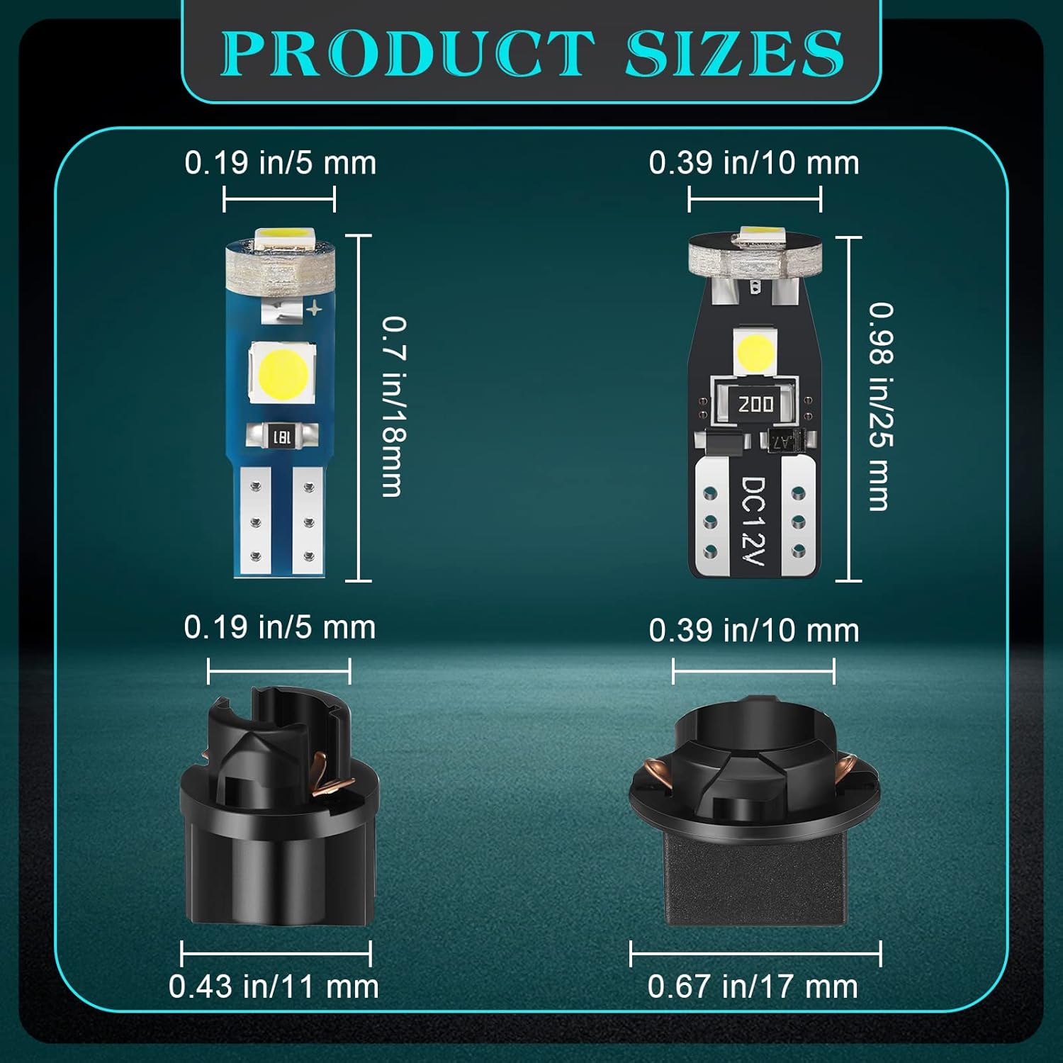 Wide Application: the dash lights can be replaced with most T5 and T10 lights, compatible with 17 18 37 70 73 74 79 85 86 2721 PC74 PC37 PC118 882 sizes and T10 T15 194 168 158 W5W and more; Please check the socket size carefully before ordering