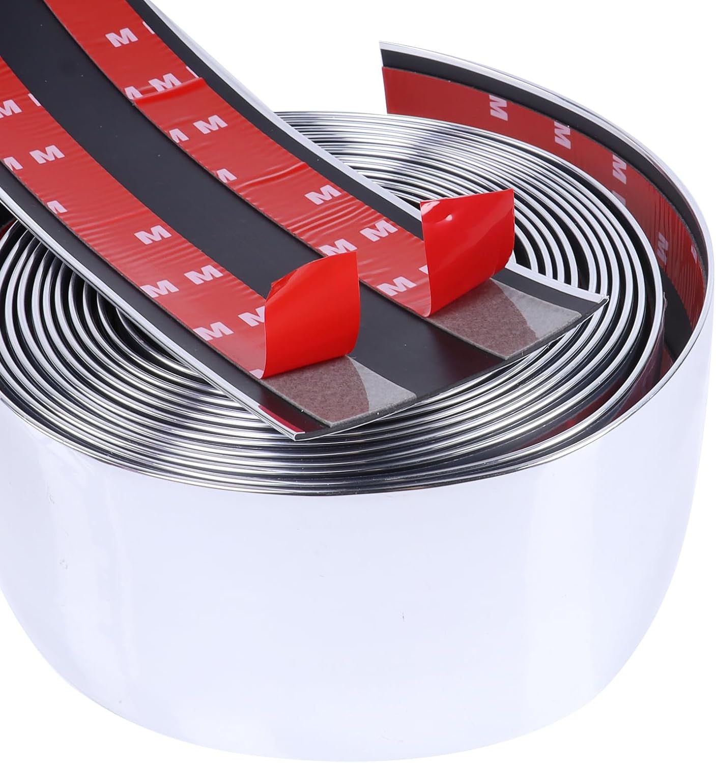 Wide: 2-3/4inch(70mm)Color: Chrome Silver/Glossy BlackMaterial: Soft PVC with Chromate TreatmentType: Self-AdhesiveCompatible: Universal fit for most cars, trucks, vans, vehicles, RV, etc.Function: Protector car from damages and scratches by slight collision.SBWLKJ’s Chrome trim molding stripe comes with strong adhesive tape on the back, making it very simple and easy to install. He is composed of high quality ABS plastic, easy to cut, you can cut it into the shape you need and install it on any vehicle, also allows you to customize your vehicle in your own way, which will make your car look very fashionable!✔Note: Please measure your desired installation area to be sure that you select the correct size kit that meets your needs.