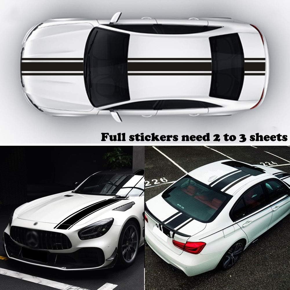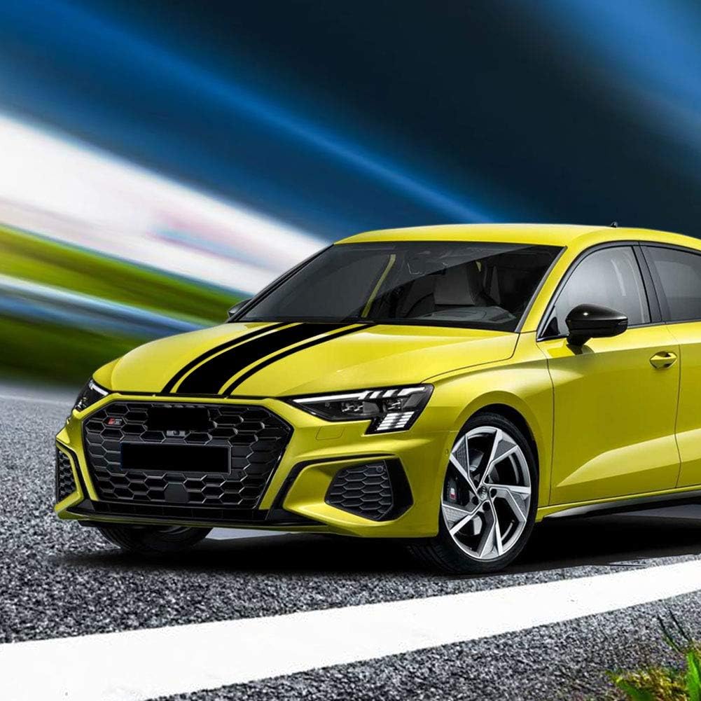 Leasinder Car Hood Stripe Sticker Auto Racing Stripes Body Side Decal Hood Bumper Stripe Black Decal Vinyl Stripe Sticker Decoration