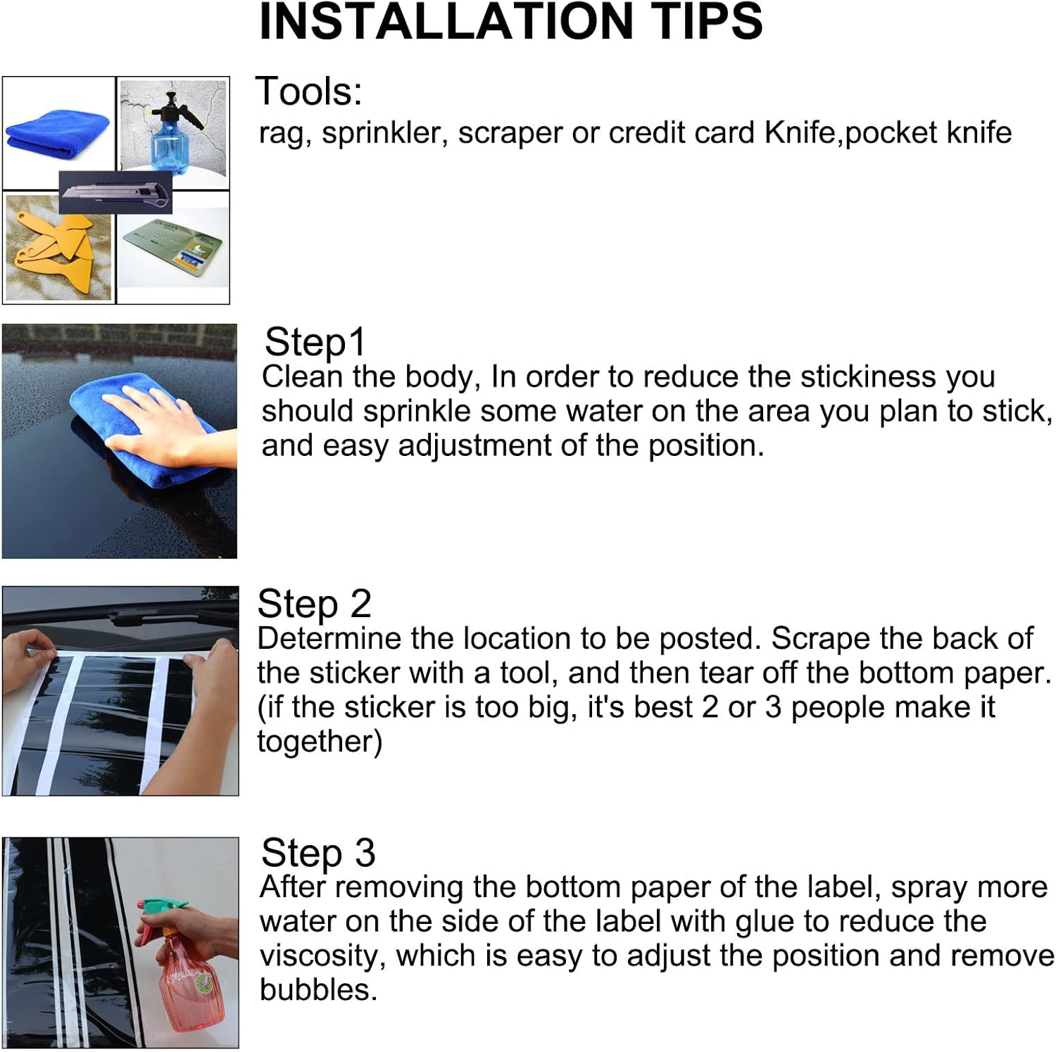 – Do not wax the car 7days before using the sticker. The wax will make the sticker not sticky.