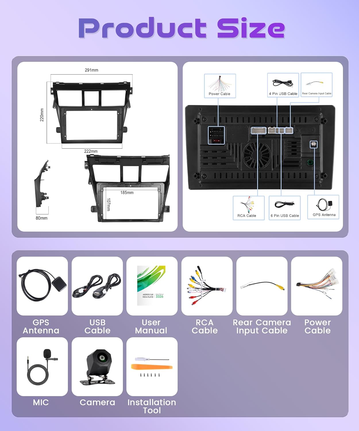 Built-in WIFI and GPS Navigation: for 2008 Toyota Yaris radio built-in GPS module, which supports online and offline maps. You can also use voice guidance and real-time traffic information. Connect to the internet via WIFI hotspot or tethering, and browse the web, stream online content, download apps on the device.