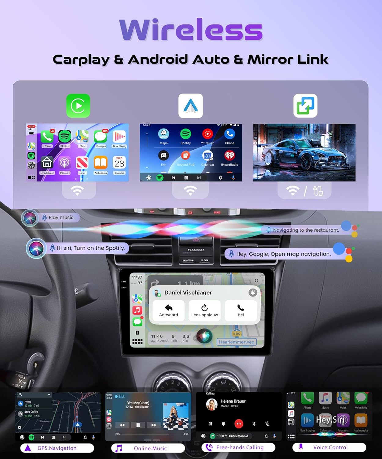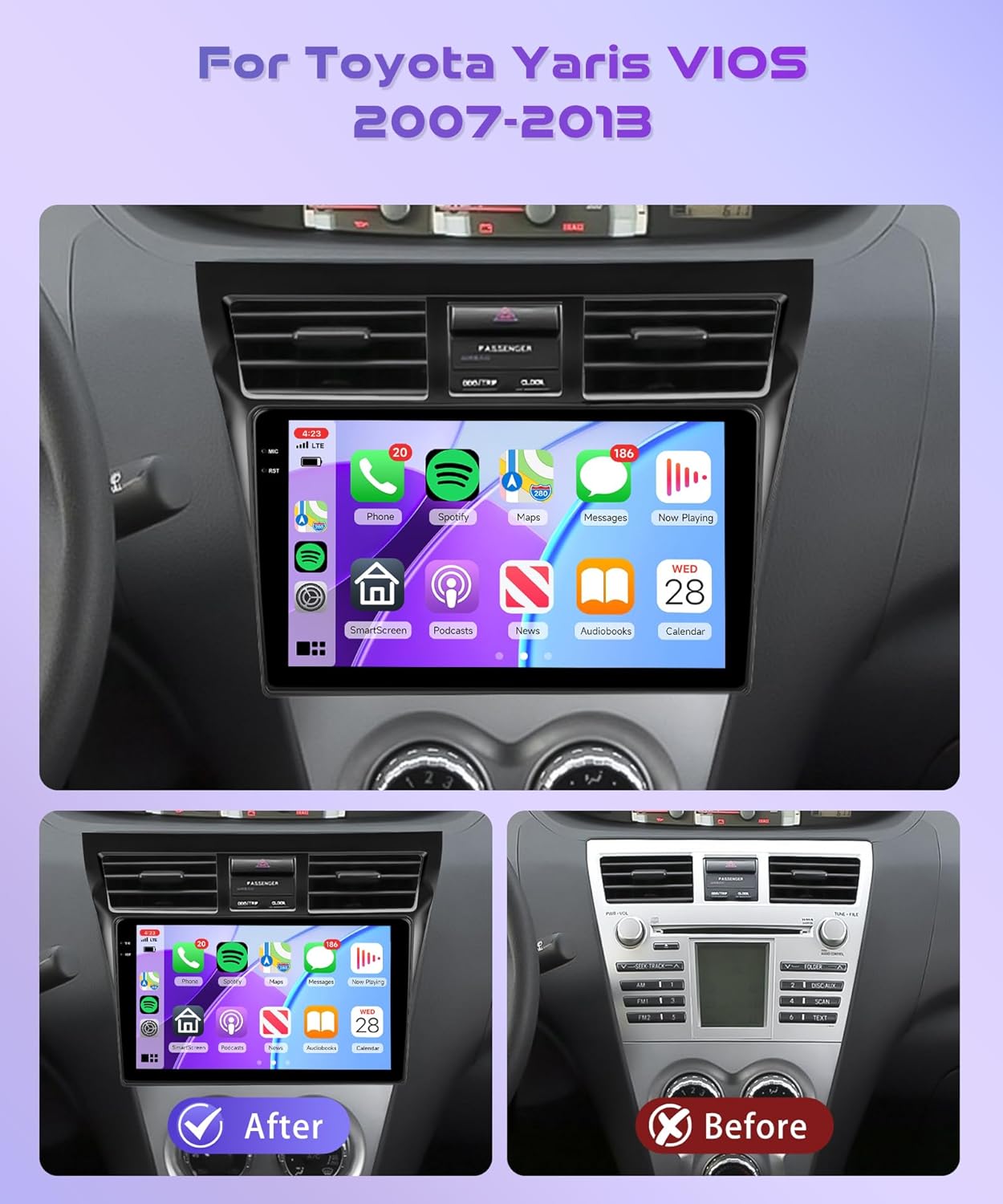 Wireless Carplay & Wireless Android Auto & Mirror link: for 2007 Toyota Yaris radio support use iPhone or Android phone wirelessly with the device, and control your phone’s apps. can make calls, send messages, play music, navigate with just your voice or touch. For Toyota Yaris car radio support IOS/Android mirror link, use USB cable or WIFi, mirror your phone’s screen on the device’s display, You can use your phone’s apps, music, videos, etc on the device.
