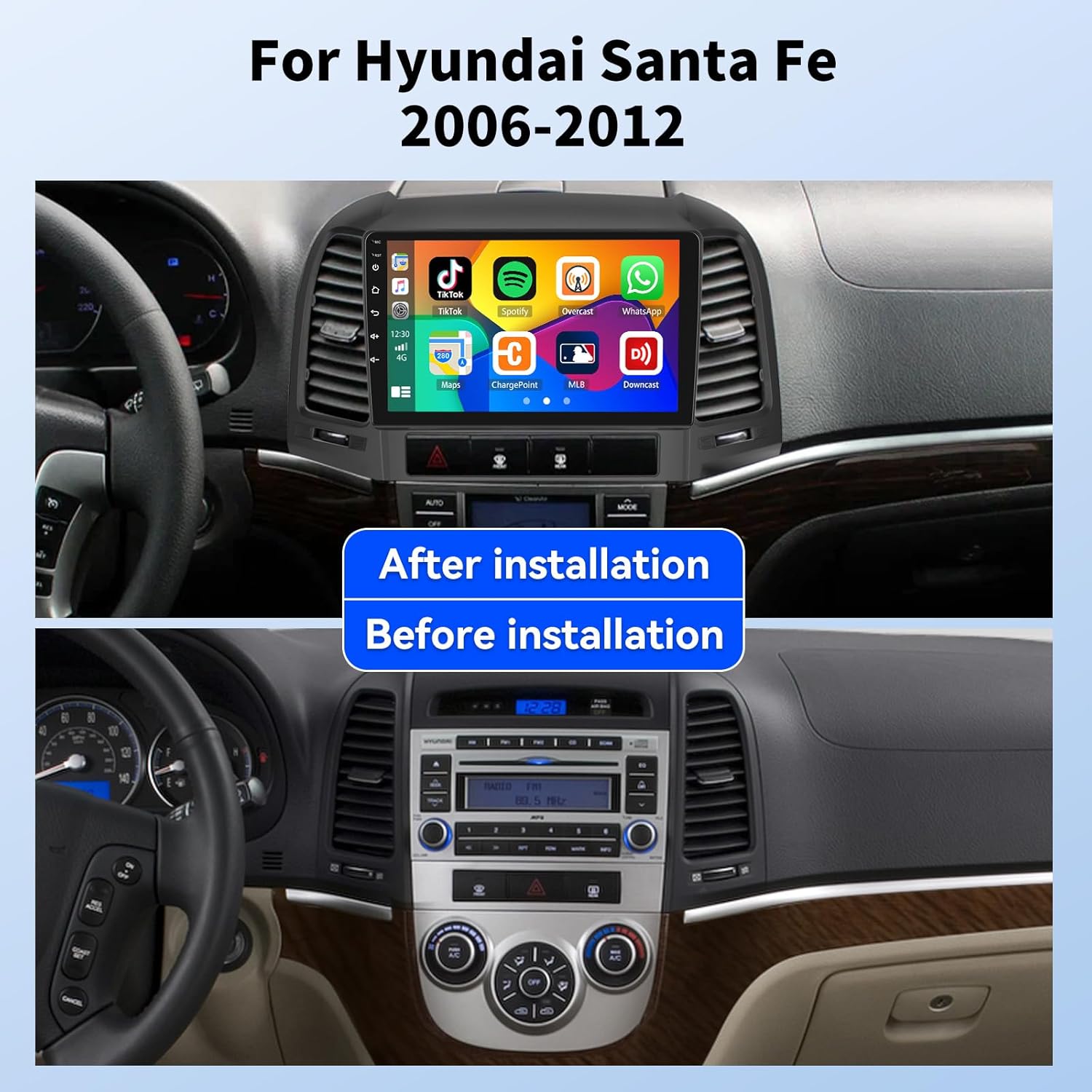 4GB+64GB, 8 Core Qualcomm Car Stereo Radio for Hyundai Santa Fe 2006-2012 Android 13 Wireless CarPlay Android Auto 9 Inch IPS Touchscreen GPS Navigation Bluetooth 5.1 DSP WiFi AHD Backup Camera SWC