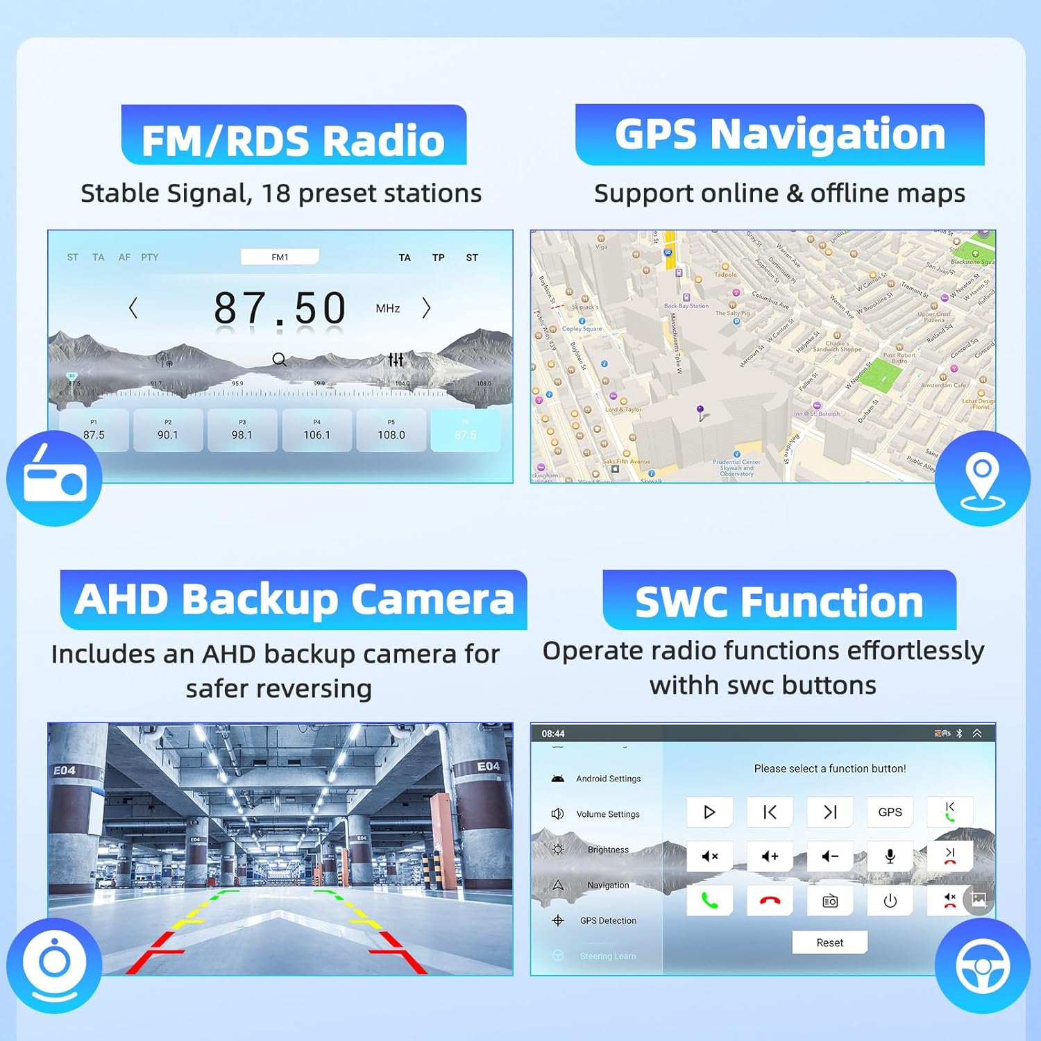 【AHD Backup Cam & SWC】 This car stereo for Hyundai Santa Fe with backup camera supports rear view image input. 170-degree ultra-wide angle,waterproof design. The screen automatically switches when vehicle is reversing, improving safety. This for Honda Odyssey 2010 radio support the steering wheel control of your original car. After correct wiring, learn the steering wheel buttons then you can use the steering wheel control function, more convenient.