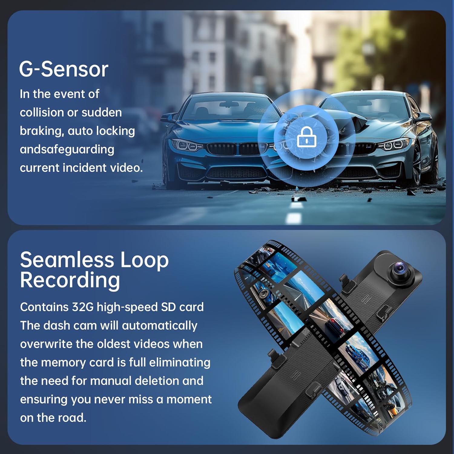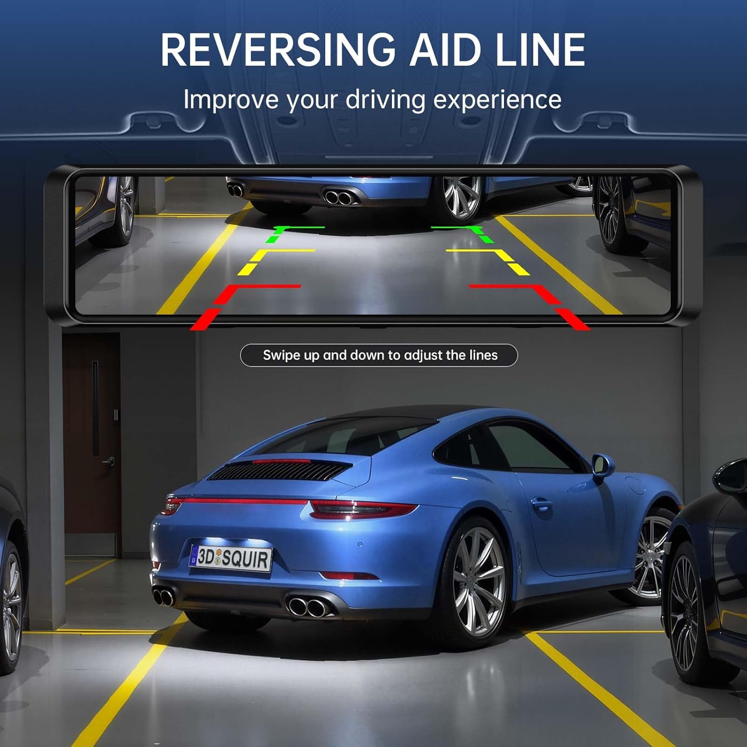 12” Full Touchscreen with Wide 170° View: The large 12-inch mirror touchscreen offers an intuitive interface and a 170° wide-angle lens, minimizing blind spots and giving you a comprehensive view of your surroundings.