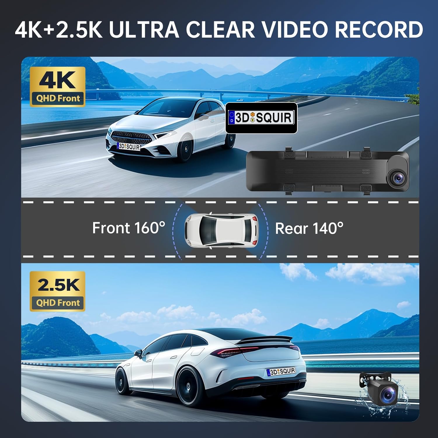 Ultra HD 4K Front + 2.5K Rear Recording: Capture every detail on the road with the 4K front camera and 2.5K rear camera, providing crystal-clear footage for enhanced safety and security.