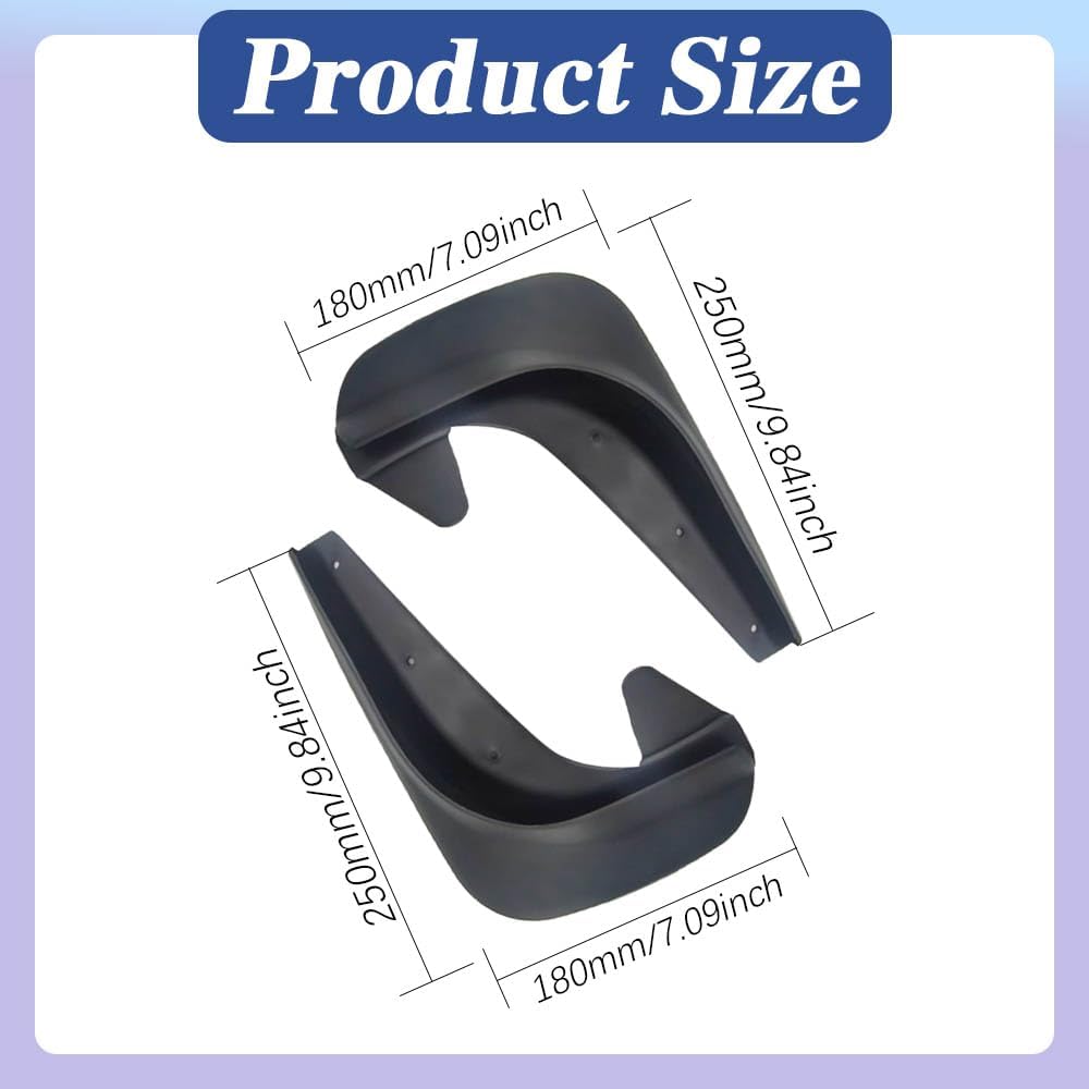 Universal Fit: Fender Front & Rear Mud Guards Splash size 9.84*7.09 inches. No Drilling Mudguards Mudguards Mudflaps with Hardware Kits are suitable for most cars, SUVs, sedans, etc. Please make sure our fenders are the right size for your car before purchasing