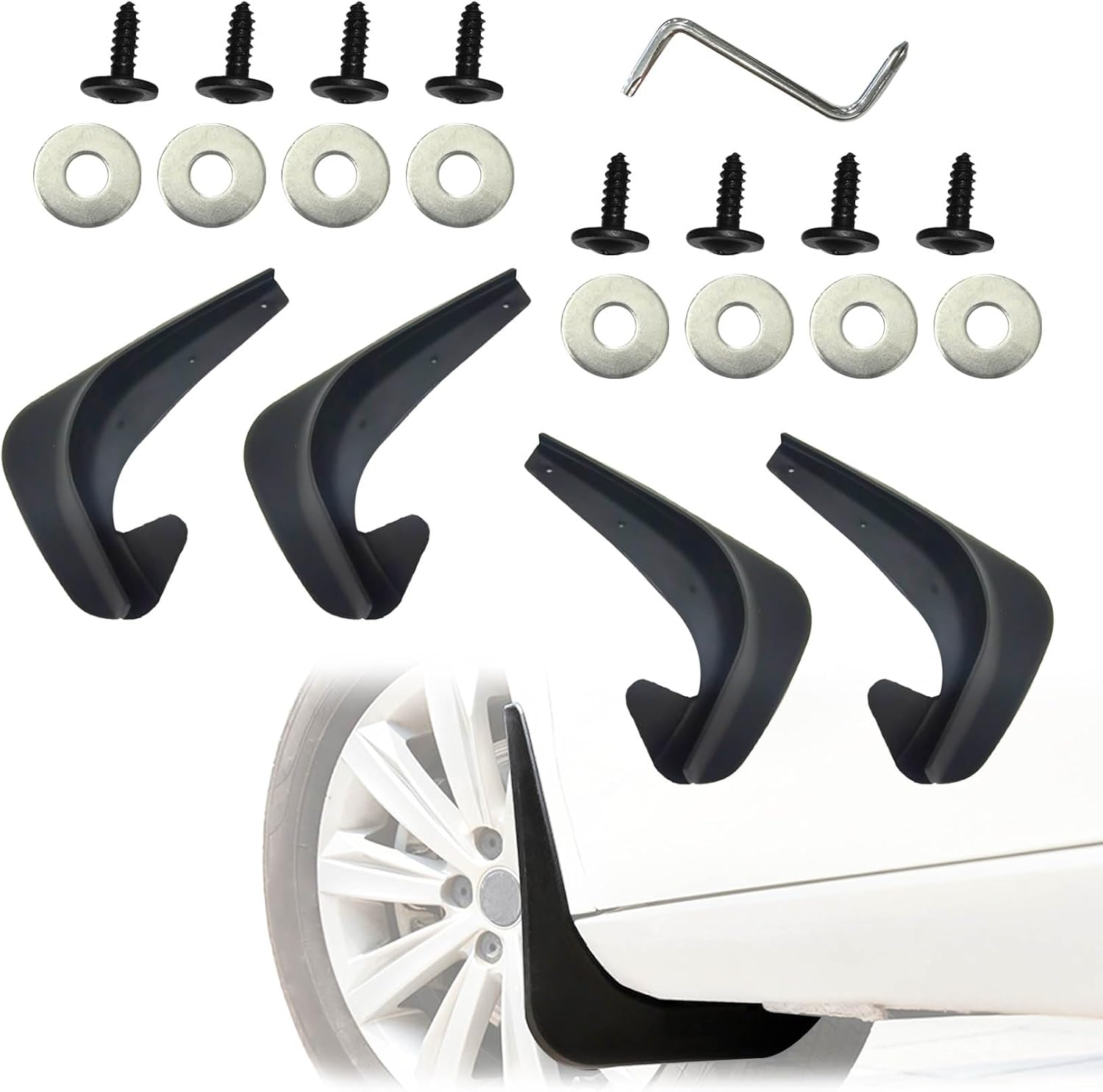 Package Includes: The package includes 4 x car mud flaps splash guards, 1x hex wrench, 8x spacers and 8x screws, which provides you with all the mounting parts and mounting tools for 4 wheels