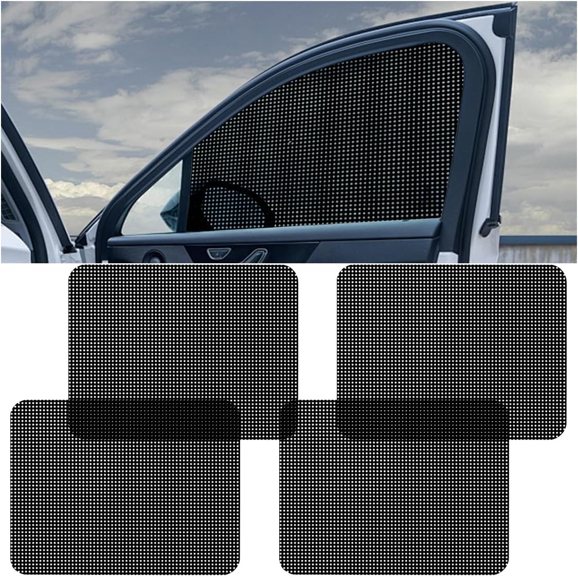【High-Grade Materials】: The car side window sunshade is crafted from PVC material. It boasts features such as foldability, easy cleaning, reusability, water resistance, resistance to fading, and is not prone to breakage or tearing. With its hollow mesh and semi-transparent design, it won’t obstruct the view when looking outside from the car. You can still enjoy the scenery outside the window after pasting it.