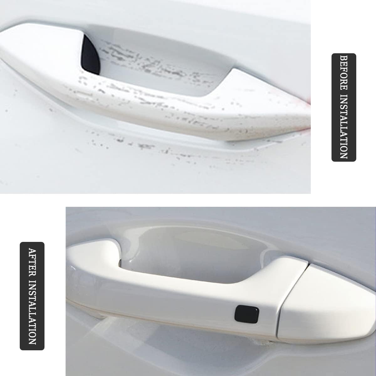 【Easy to Install】: 1. Clean car door handle cup and let it dry; 2. Tear off the protector film from adhesive backing; 3. Stick film onto the cup and adjust the perfect position.