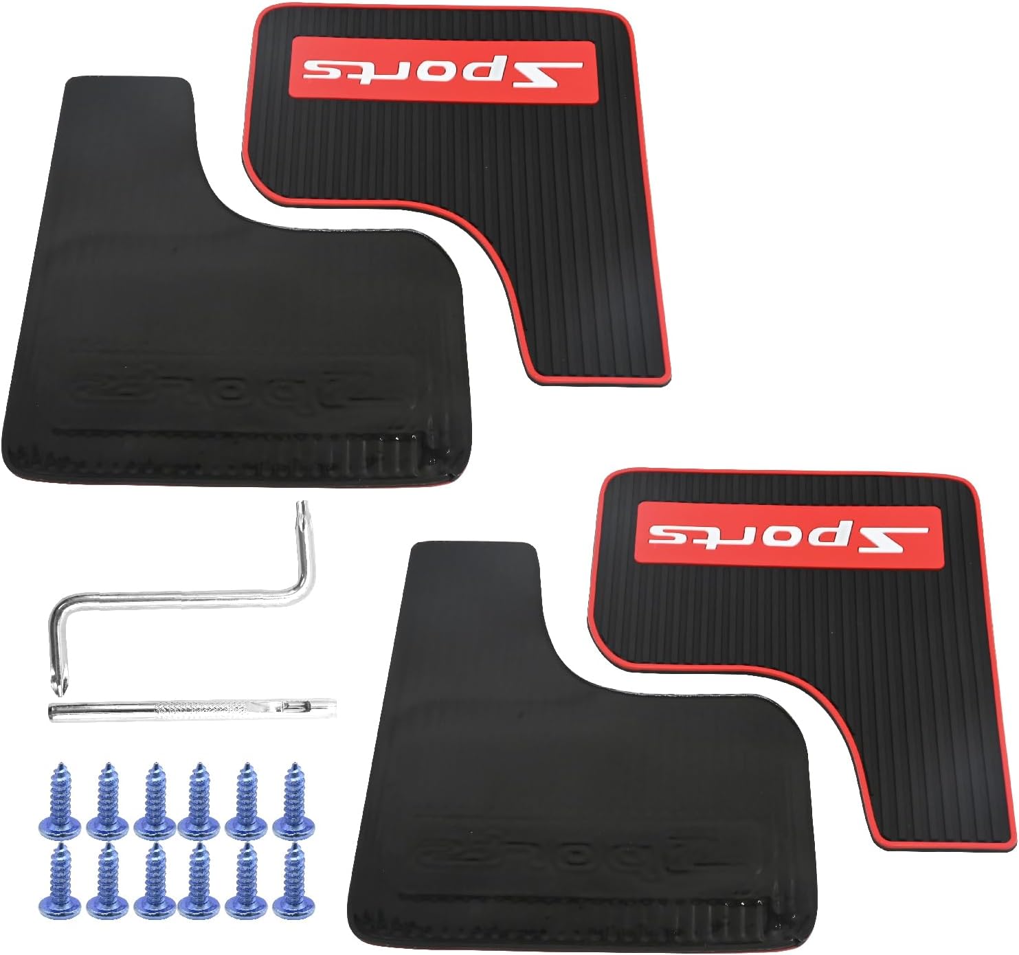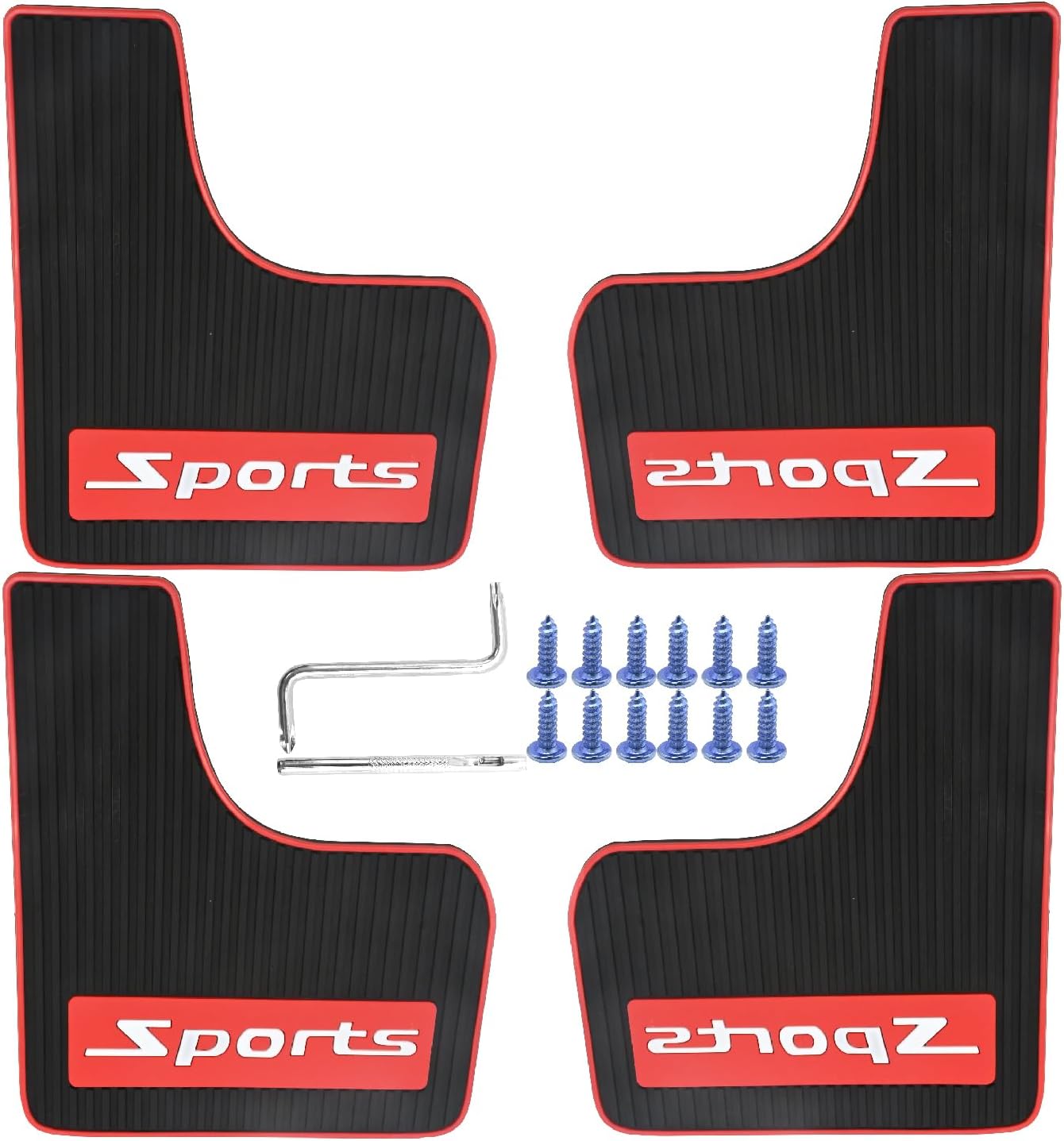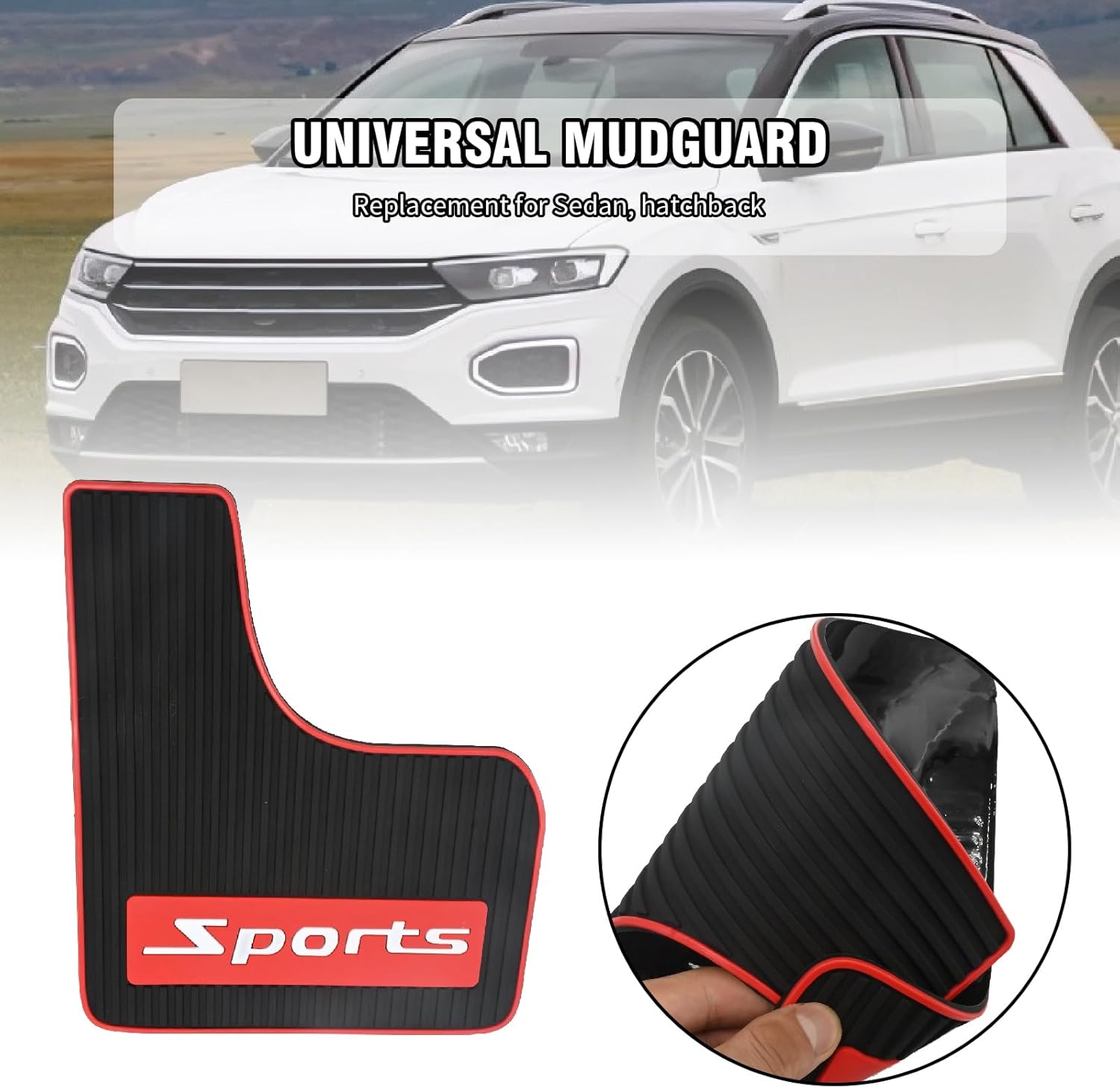 Material: Soft rubber, flexible, wear-resistant, heat-resistant, and low-temperature resistant Quantity: Includes 4 mud flaps Universal Fit: Replacement for sedan and Replacement for hatchback models Color: Black with red accents Quantity: 4 mud flaps included