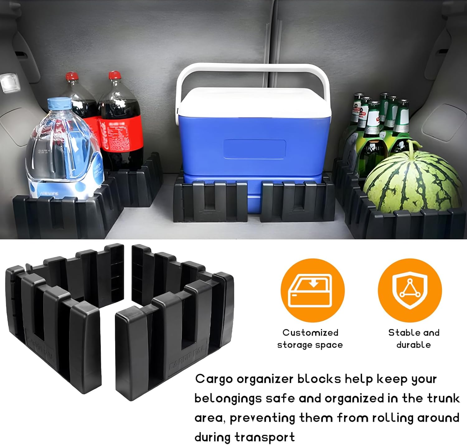 【Practical Function】: These blocks keep your items from rolling around, thus preventing clutter and ensuring a tidy trunk. By securing your groceries or cargo, they maximize trunk space and make the back of your car more organized, making it easier to find and access your items.