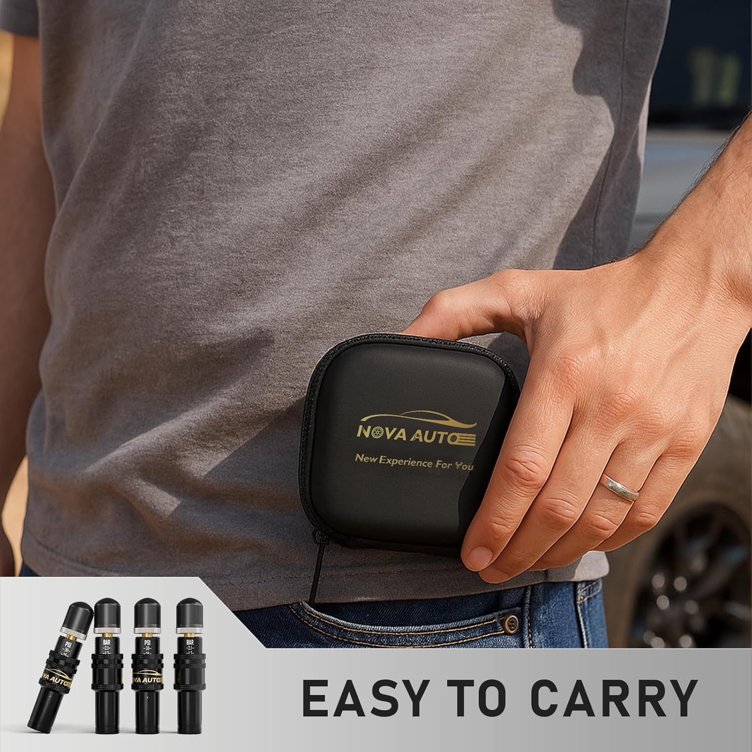 【EASY TO CARRY】:Package includes four deflation valves kit and a zip pocket, the overall weight is only 0.3lbs, compact size, can be easily put into the toolbox or backpack side pocket. You can take it with you on long drives and camping adventures.