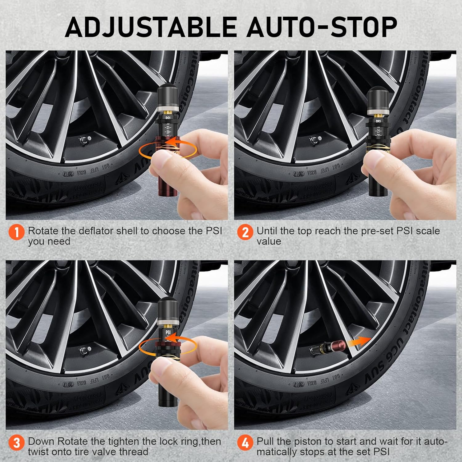【NOTE】:Individually calibrated tire deflators perform reliably with a tolerance of +/- 2 PSI and are intended for quick deflation setups but not for very precise vehicle adjustments. If you have any questions, feel free to contact us.